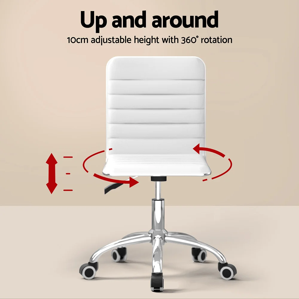 Paired with the desk is an office chair with its faux leather upholstery is waterproof and offers sophistication and class. The seat is rotatable 360 degrees to face any direction with ease, while the soft padded seat keeps you comfortable for longer. It is height adjustable with a low-back design to allow you to be seated in your most comfortable position and posture. The hard metal base has five castor wheels for ease of movement.