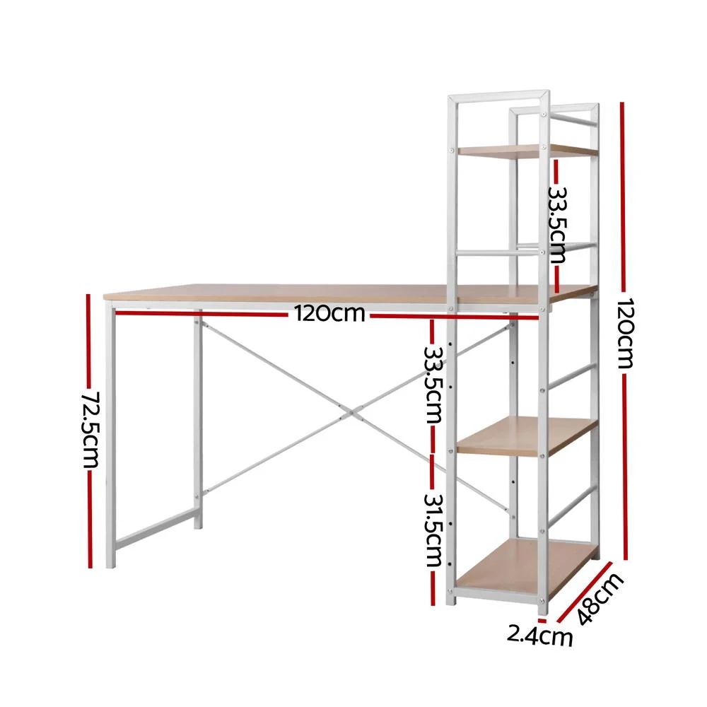 On one side, four shelves with bar backstops are perfect for books, files, binders and all your reference essentials. Adjoining the 4-tier open shelves is an exceptionally thick 15mm engineered wood with melamine veneer desk top that provides more than adequate work space for your laptop and other working paraphernalia. To enhance its sturdiness, a X-brace across the back keeps the ensemble firm and steady at all times.