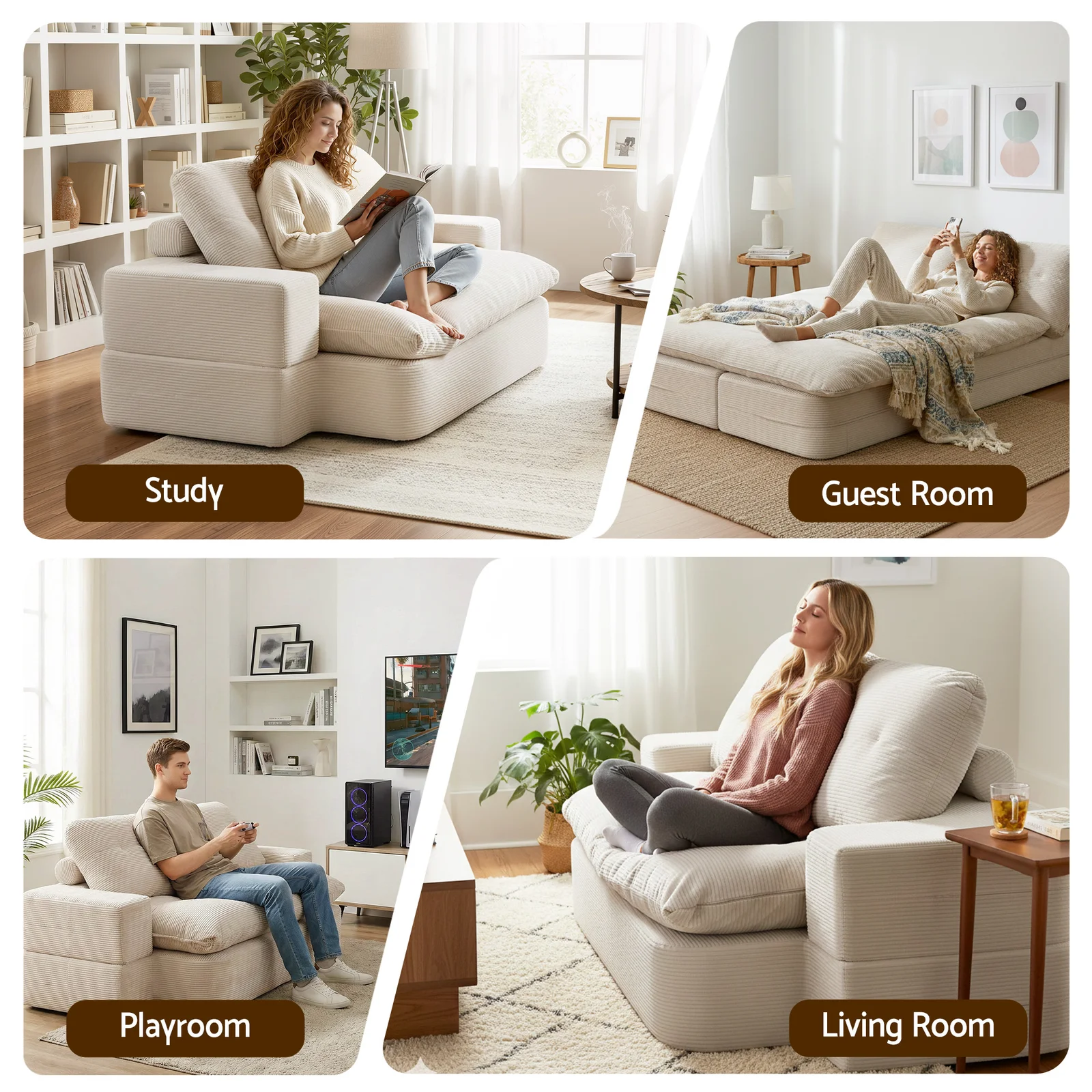 Unlike traditional sofa beds with heavy, clunky frames or low-quality sponge filling, our boneless design focuses on pure foam comfort. The 30D high-density foam offers a "firm-yet-soft" feel that supports your spine while preventing the "sinking" feeling common in cheaper alternatives.
