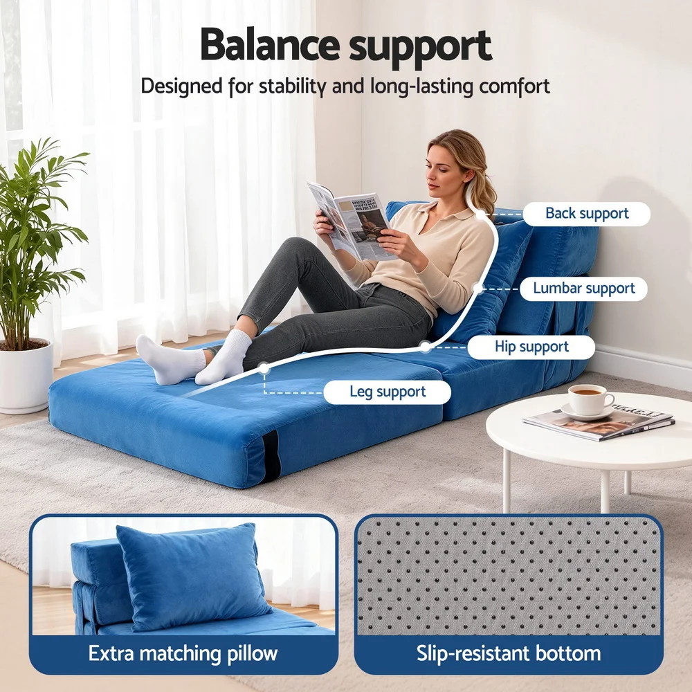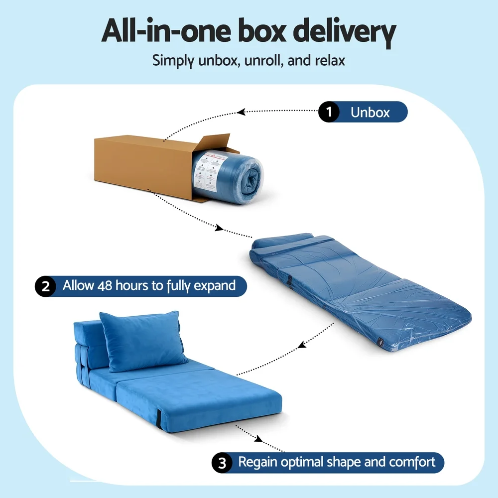 The Artiss 3-in-1 Folding Sofa Bed is the ultimate solution for versatile, space-saving comfort. Upholstered in premium soft velvet fabric and filled with high-density foam, it provides medium firmness support suitable for sitting, lounging, or sleeping.