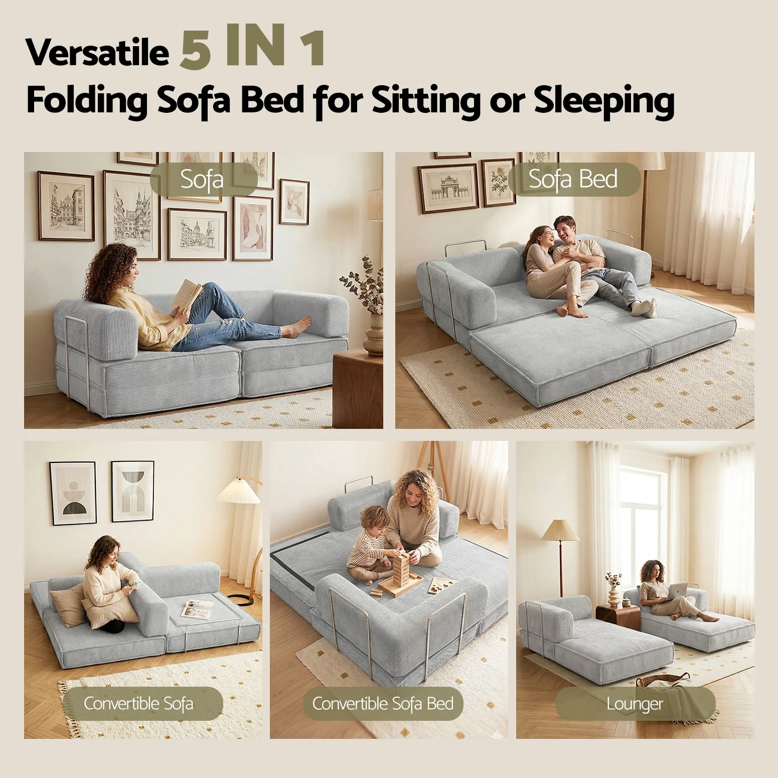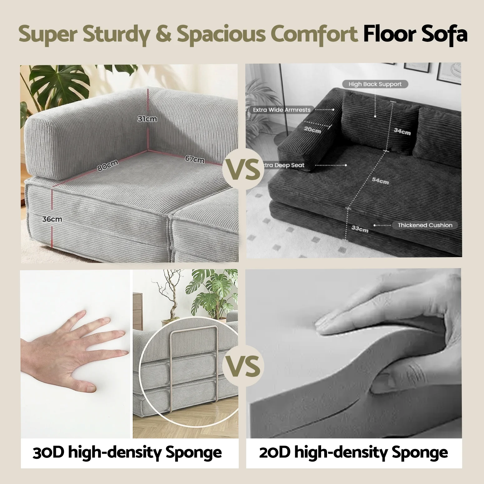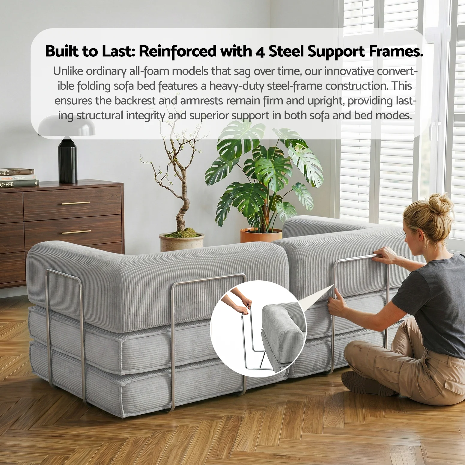 The breathable corduroy fabric and high-density sofa bed mattress guarantee lasting comfort. In sofa mode, it measures 180 x 100 x 68 cm, and expands to an impressive 180 x 200 x 60cm,when opened for sleeping. This makes it ideal for small spaces, serving as both a sofa and a foldable sofa bed!