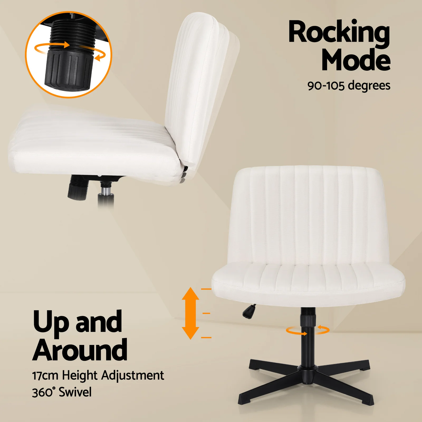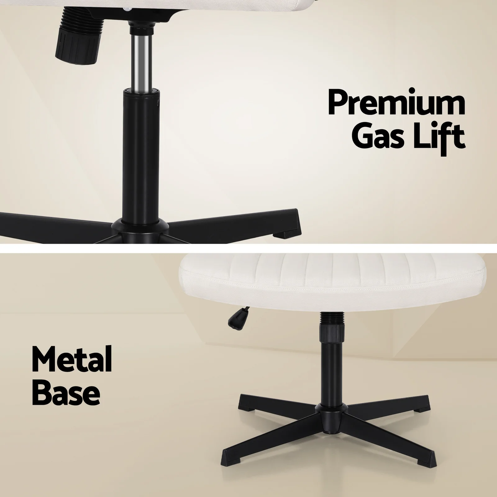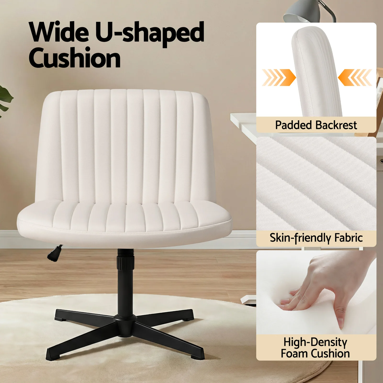 Enhance your workspace or living area with this criss cross office chair, designed for both comfort and functionality. The wide backrest and U-shaped high-density foam seat allow you to sit cross-legged or maintain proper posture for long hours of work, study, or leisure. Its armless design saves space and provides unrestricted movement, while the sturdy metal frame with non-slip foot pads keeps the chair stable on any hard floor. With 17cm adjustable height and full 360° swivel, this versatile chair adapts to desks, vanities, or multi-purpose spaces effortlessly. Stylish, comfortable, and durable, it's the perfect addition to any home or office environment.