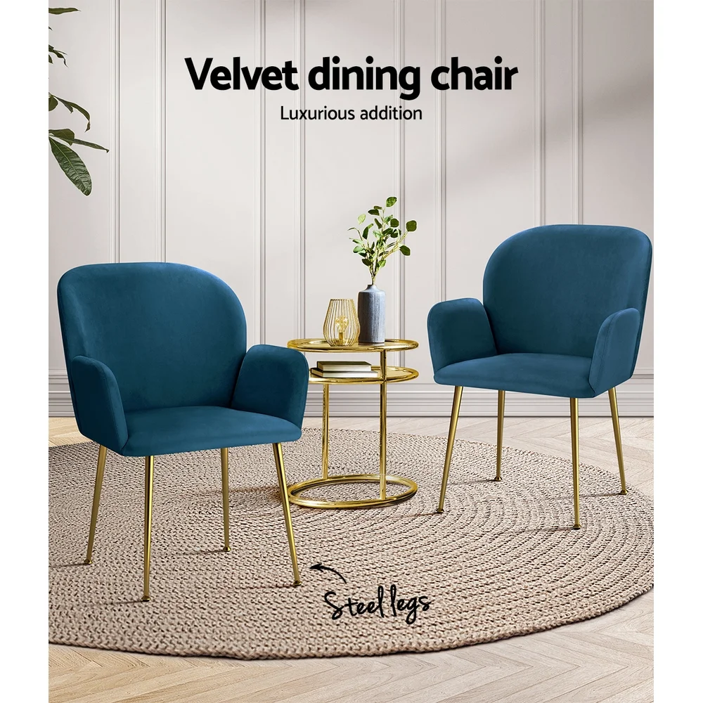 Wine, dine, and entertain guests with our meticulously designed Artiss dining chairs. They make a luxurious addition to any dining space and will make your guests envious of your gorgeous dining ambience. Not just for your dining room, these dining chairs are sure to make a statement in your study room, living room, and dressing room. Their versatility and ultra-modern design make them stand out. Incredibly stylish and sophisticated, our Artiss dining chairs feature inner solid wood construction with plush velvet upholstery that ensures lasting quality. It comes with solid steel legs with an anti-slip feet pad for ultimate stability and keeping your floors scratch-free. The dining chairs flaunt plush seats made with high-resilience foam that offer incredible comfort and support, and the cushioned back support with comfortable armrests allow you to dine with great comfort. Our dining chairs can hold up to 150kg weight, and their reinforced steel fixings make them super stable and reliable. Our Artiss dining chairs are certainly a big bang for your buck. Bring home this luxurious set of dining chairs without any hesitation.