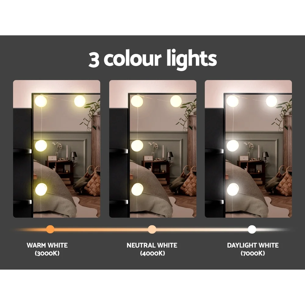 Feel like a star straight out of Hollywood with the Artiss Dulcea Dressing Table. Packed with generous storage and other convenient features, your new beauty routine will be a breeze. Made from quality MDF particleboard with a melamine finish, the table is built to last. The Hollywood-style makeup mirror is surrounded by bright LED bulbs for the perfect illumination. Choose from warm, neutral and daylight white light so you can always look stage-ready. The vanity features open shelves that you can use to display trinkets or beauty products. Two generous storage drawers with silver handles open smoothly on anti-rust runners, giving you instant access to your beauty essentials. A foam-padded PU leather stool allows you to sit comfortably while applying make-up or skincare and can be neatly tucked away when not in use. Easy to install and even easier to maintain, you'll love getting ready for the day in front of your new Artiss Dulcea Dressing Table.