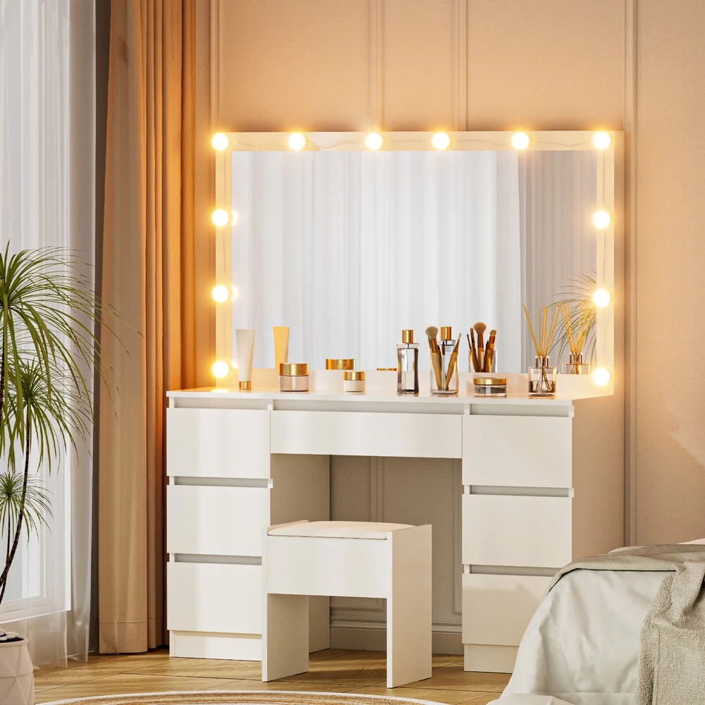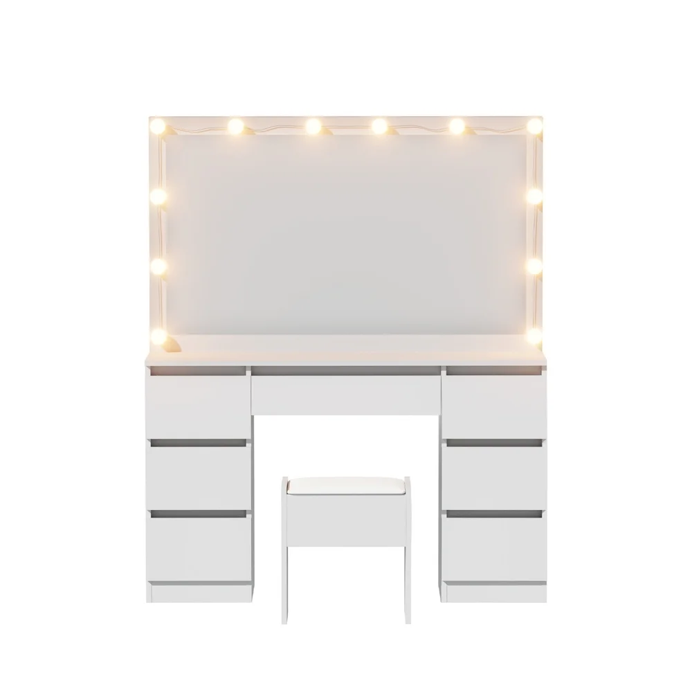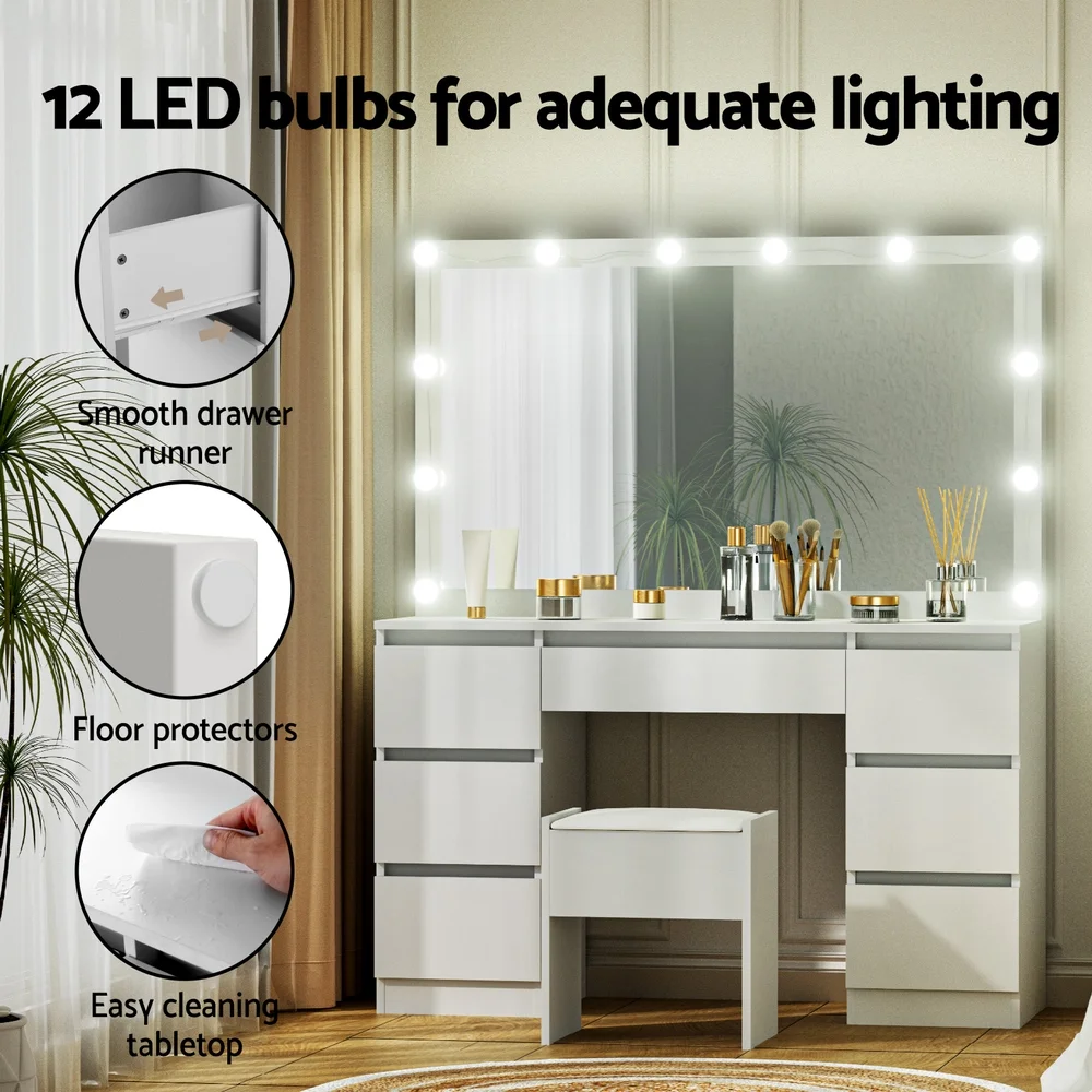 Artiss Dressing Table Vanity Desk Set Stool LED Bulbs White
