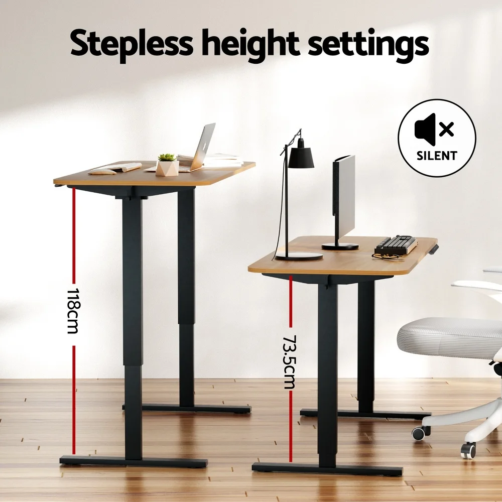 This Artiss 140cm Electric Standing Desk revolutionises workspace adaptability with whisper-quiet motorised height adjustment (73-118cm). The 6-button controller stores four personalised presets for seamless transitions between sitting/standing positions. Crafted with a durable 16mm melamine desktop and reinforced steel frame (70kg load capacity), it combines stability with contemporary aesthetics. Features like collision detection technology and rounded-edge design ensure safe daily use in home offices or commercial spaces. Includes white/oak desktop options and tool-free assembly.