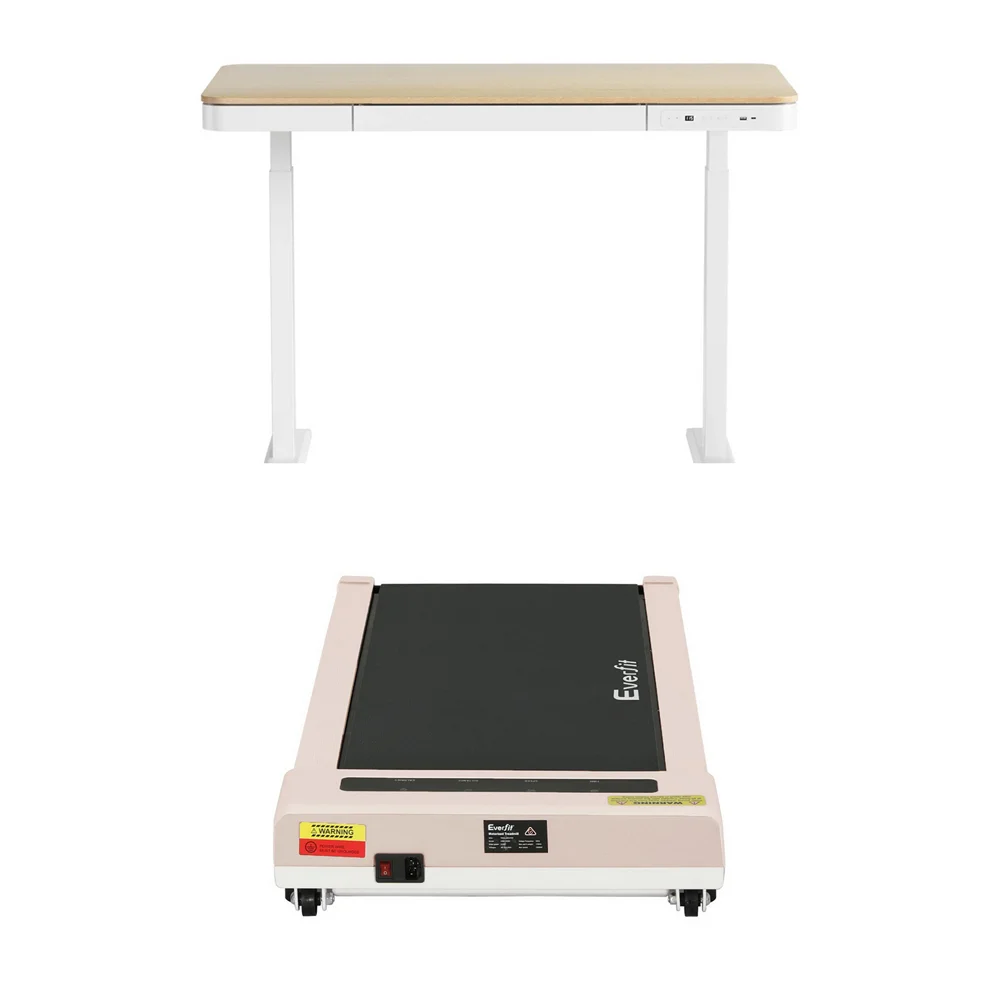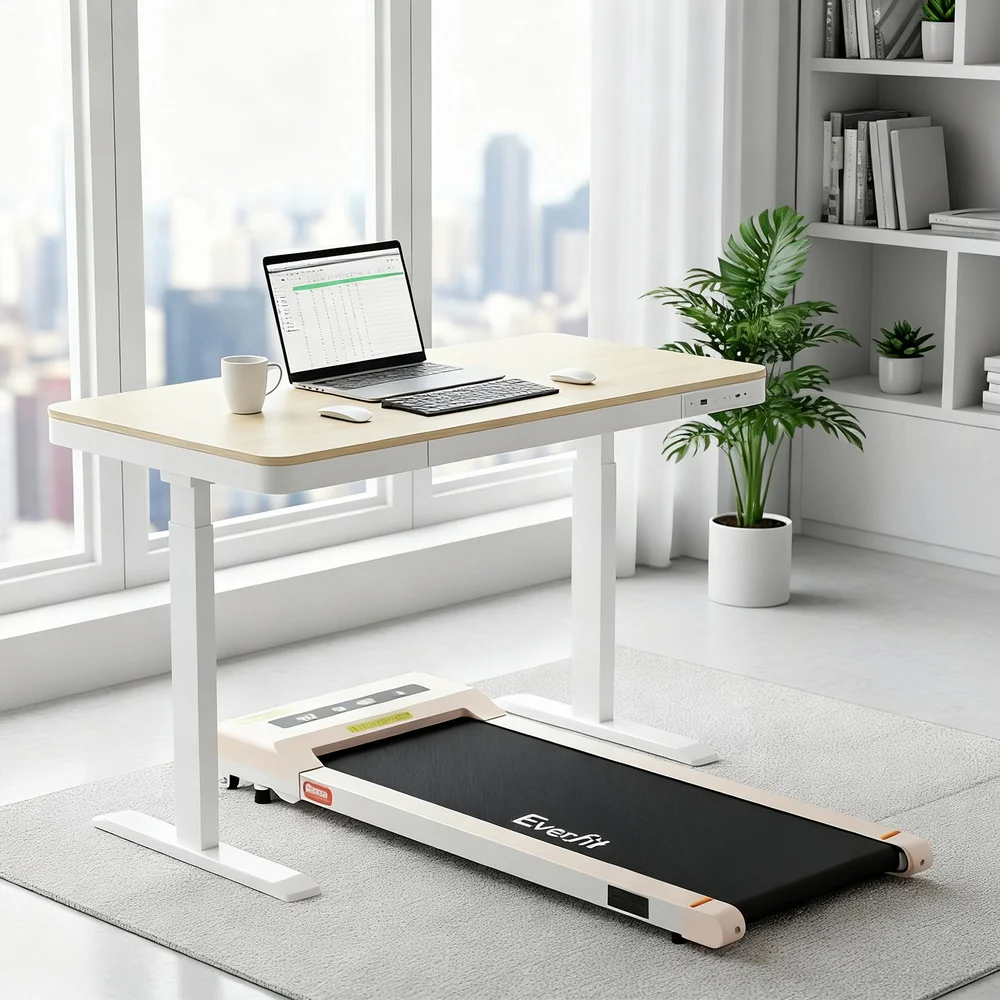 Achieve the ultimate work-life balance with our innovative 2-in-1 Standing Desk and Treadmill Combo. Designed for the modern home office, this space-saving solution features an electric standing desk with stepless height adjustment and a powerful, energy-efficient treadmill that requires no assembly. Stay productive while walking at speeds from 1km/h to 10km/h via the digital control panel or Bluetooth app control. The large drawer, USB ports, and shock-absorbing belt ensure a comfortable, organized, and healthy work environment. SAA, CE, and EMC certified for safety.