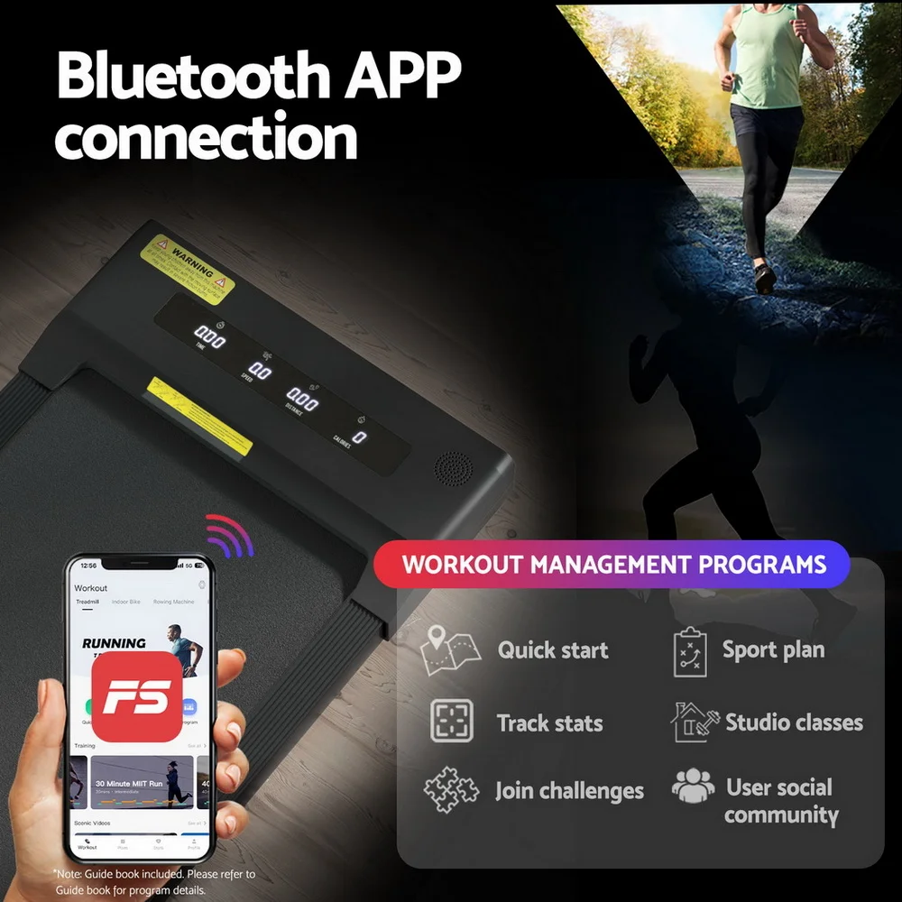 Boost your workday wellness with this innovative 2-in-1 motorised standing desk and treadmill combo. The desk features smooth, quiet height adjustment from 73cm to 118cm with memory presets. The treadmill offers a 1-10km/h speed range controlled by remote or Bluetooth app, featuring a shock-absorbent 400mm belt. Crafted with a high-quality powder-coated frame and contemporary design, this SAA & CE certified bundle is ideal for the active home office. Treadmill requires no assembly.