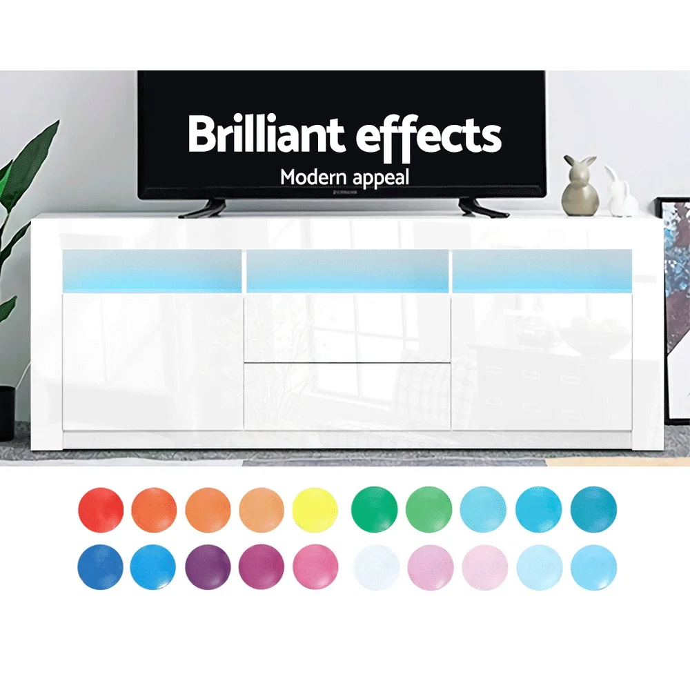 Now you can even watch television or play video games in style with our Artiss LED Entertainment Unit. The unit comes with built-in LED lighting that can be customised into 20 different colours and 5 different effects to suit your preference. You can even adjust the speed of the lighting effects. Not only does the entertainment unit create a beautiful ambience, it is certain to be a showstopper that will wow all your houseguests. The unit will be the perfect addition for your modern living room with its contemporary and linear design. The two drawers and two cabinets have a handle-less design to maintain the sleek appearance and along with the three open shelves, provide ample storage for all your entertainment paraphernalia.