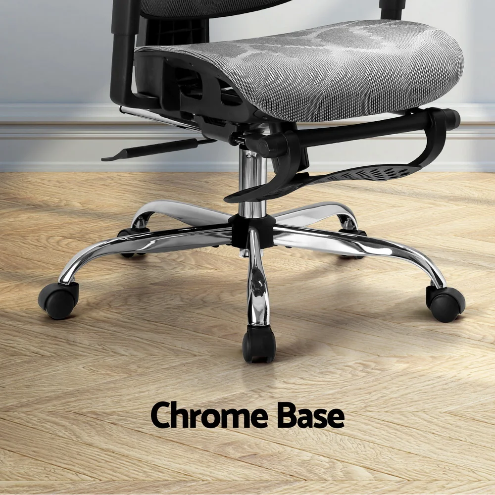 Long days in the office can be hard on your body. Stay comfortable and improve your posture with the Artiss Ergonomic High Back Chair. Designed to provide optimal comfort and support throughout your workday, our chair is the perfect addition to any office environment. The high back supports your spine and encourages good posture while you relax. The mesh material is incredibly breathable, keeping you cool and comfortable throughout the day. With an adjustable headrest and 3D multi-function PP armrests, you can customize the chair to fit your specific needs. The 10cm height adjustment ensures that you can find the perfect seating position, while the tilt tension allows for smooth reclining from 90 to 135 degrees. The chair is also 360 degrees rotatable, allowing for easy movement and access to different areas of your workspace. The chrome base adds a sleek and modern touch, while the black PU castors provide smooth and quiet mobility. Experience comfort, style, and functionality with the versatile Artiss Ergonomic High Back Chair.