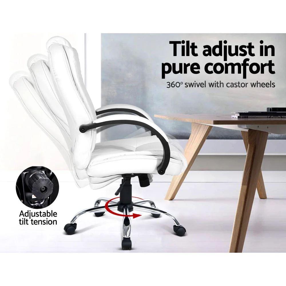 An all-time favourite, the Artiss Rainier Office Chair will bring a touch of contemporary living to your home or office. Made with premium PU leather, the chair has a high-back design, multi-layer padded seating and a comfortable padded headrest and armrests, delivering absolute five-star luxury to your workspace. It features a chrome base with easy height adjustment and tilt function, as well as 360 degrees swivel and five smooth castors. Easy to assemble and maintain, it’s even easy to clean – just use a fresh, damp cloth and your chair will look as good as new. An elite in quality and design, the Rainier Office Chair is your solution to true comfort.