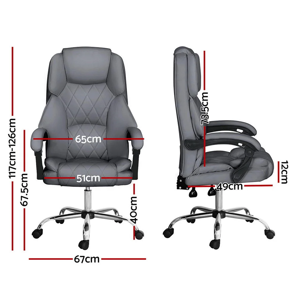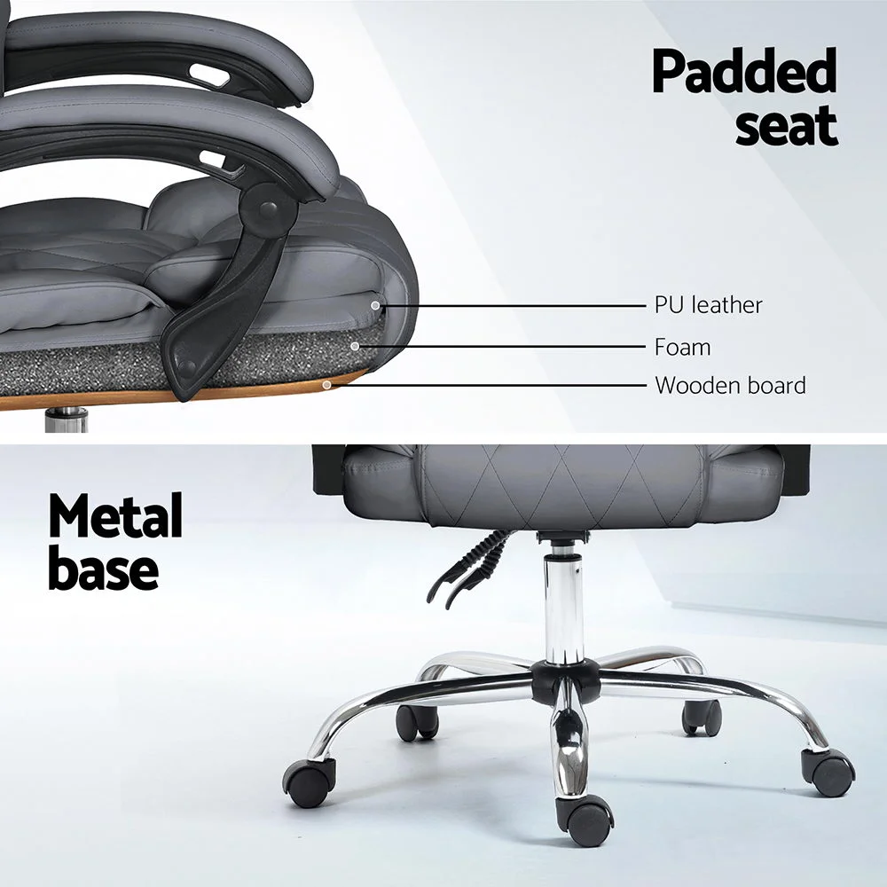 Is your office chair giving you a tough time? Stay productive and work feeling comfortable with our Artiss Camelon office chair. The office chair that makes work feel laid back. The more comfortable chair, the higher is the productivity. Our office chair is designed with your comfort in mind and will have your back so that you can focus on the more significant things. Crafted precisely with solid plywood material and PU, the office chair is sturdy and comes with a high-density foam padding and plush polyester filling. Furthermore, the stylish chrome base is not to be missed. It also features a contoured high-back design that will give you the support you need and help you have a better posture, and the retractable footrest helps you sit comfortably. Plus, the office chair can be adjusted to your preferred requirements; adjust the height with gas lift mechanism to suit your needs, 90 degree to 135 degree reclining seat for a comfortable sitting position, 360 degree rotating seat, adjustable padded armrests, and easy mobility around your workspace with smooth castor wheels. Contemporary and well-crafted, our Artiss dual padded seat and back Camelon office chair is sure to offer you a super comfortable seat all day long. Add this office chair to your home office or study room. You are sure to fall in love with the comfort it offers.