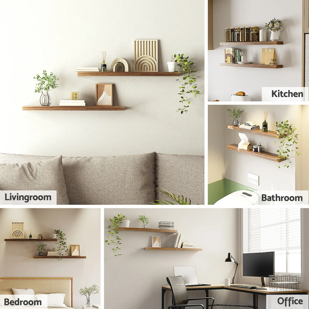 Enhance your interior with the Artiss 2pc 90cm Floating Wall Shelf, exclusively crafted from premium Paulownia wood for a lightweight yet durable finish. These large shelves provide ample 90cm storage space for books, d��cor items, or essentials, making them perfect for living rooms, kitchens, or bedrooms. The wall-mounted design saves floor space while offering a sleek and modern look. Easy to assemble and maintain, this shelf set is the ultimate solution for stylish and functional storage.