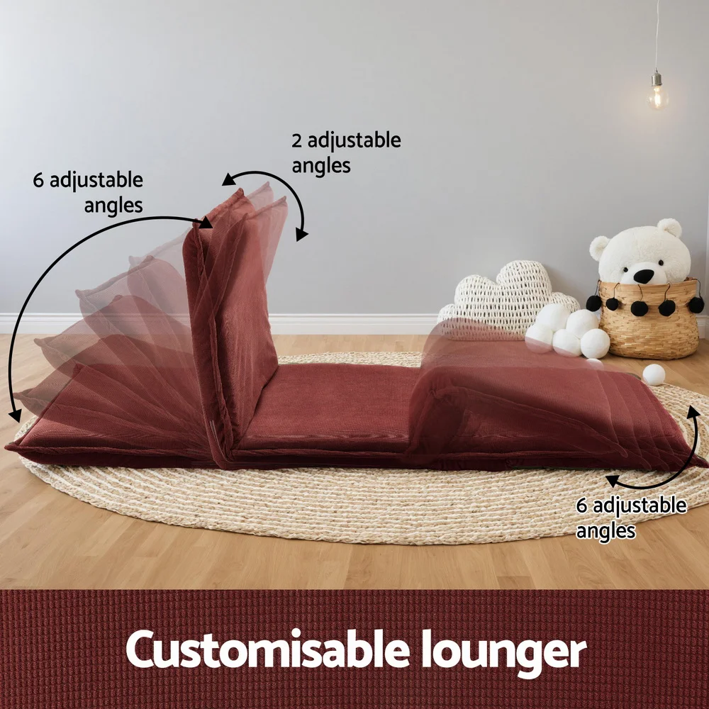 Transform your relaxation experience with our adjustable 2-seater floor lounge. Compact yet versatile, this lounge features a 6-level adjustable back and leg support system, offering maximum comfort. Wrapped in premium corn-kernel corduroy, it's soft, durable, and stylish. The cat-ear style edges and extra pillows add a touch of charm and comfort. High-resilience foam ensures support, while the sturdy metal frame and foldable design make it durable and easy to store. Perfect for any room, this lounge requires no assembly—just unfold and enjoy!