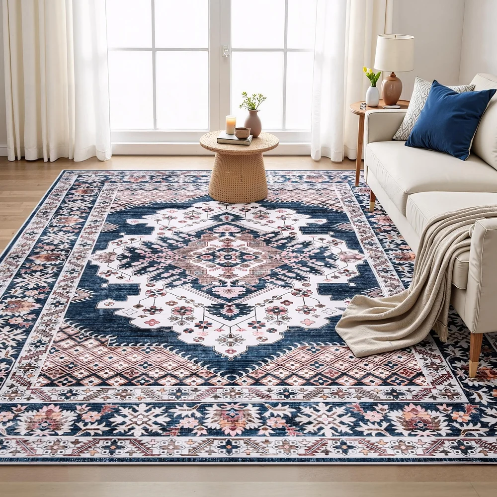 Refresh your home this Spring with the Artiss Persian Washable Rug. This large area rug features a stunning vintage design in elegant teal and blush tones. Its ultra-thin, low-profile pile is fully machine washable, making it the perfect, easy-care floor carpet for any busy living room.