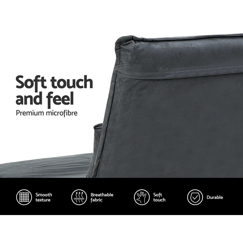 Forget about beanbags! The Artiss floor lounge sofa makes a perfect piece of furniture for chilling with friends. It allows you to create a beautiful and cosy sitting space anywhere effortlessly. So if you're tired of blow-up mattresses or uncomfortable beanbags, then you'll love our floor lounge. Our floor lounge is all about comfort, versatility, and beauty. It comes in gorgeous charcoal that will complement any space. Plus, its soft cushioned seat makes it quite comfortable to relax. Our floor lounge sofa features heavy-duty steel frame with premium microfibre fabric for durability and comfort. It boasts a convenient foldable design that enables you to fold it when not required. This makes it perfect for small spaces. Our floor lounge sofa can be adjusted into different positions for added comfort and convenience. You can use our floor lounge in different ways: lie on it, sit on it, or relax with your legs stretched. Great for movie marathons, sleepovers, gaming nights, or simply for snuggling. Purchase this versatile floor lounge today.