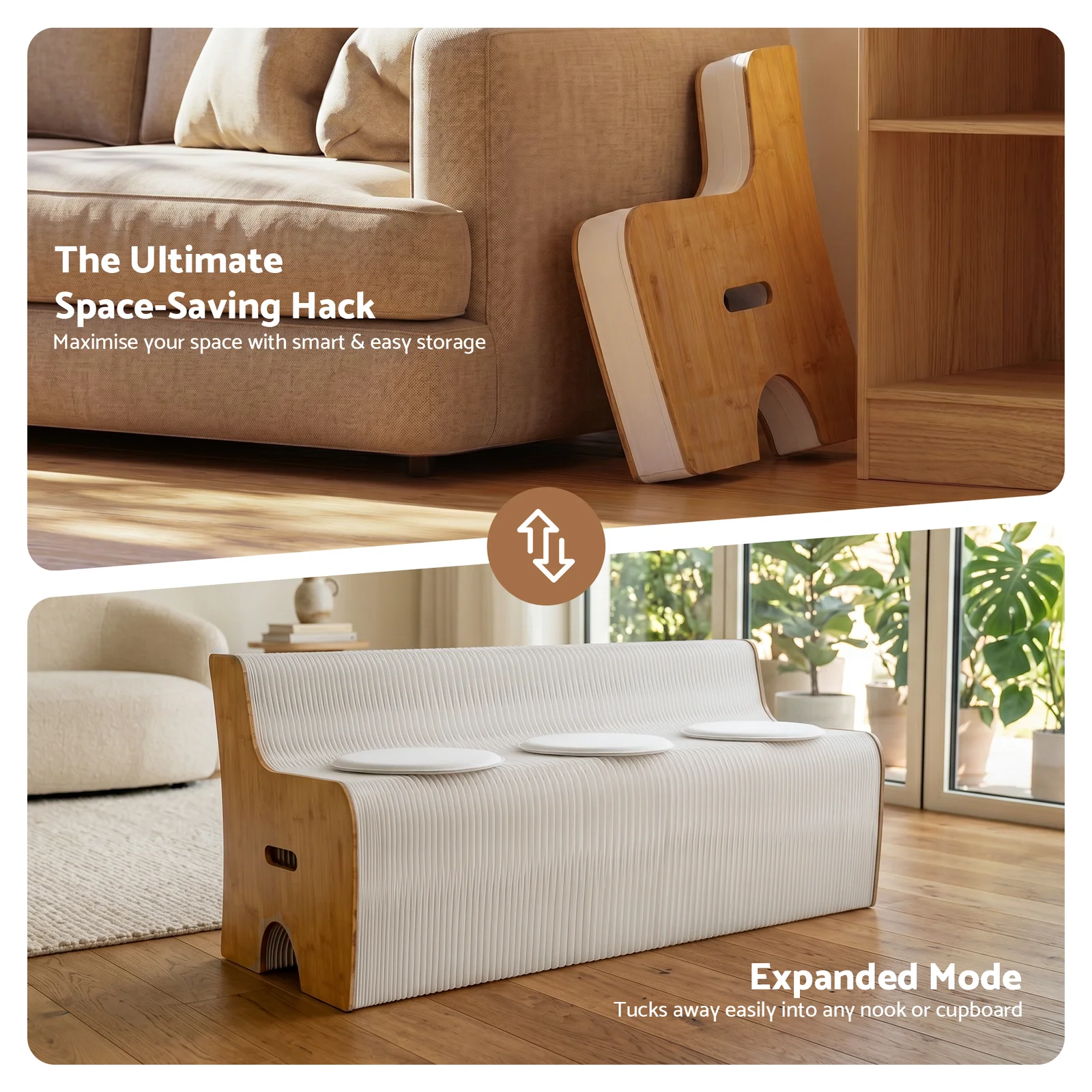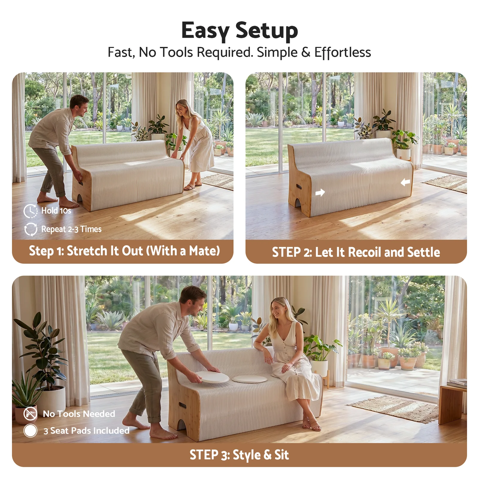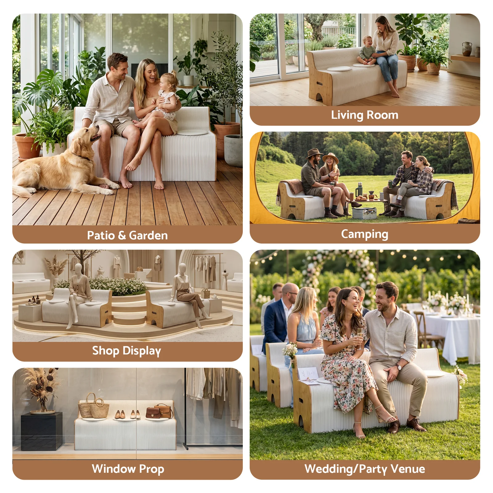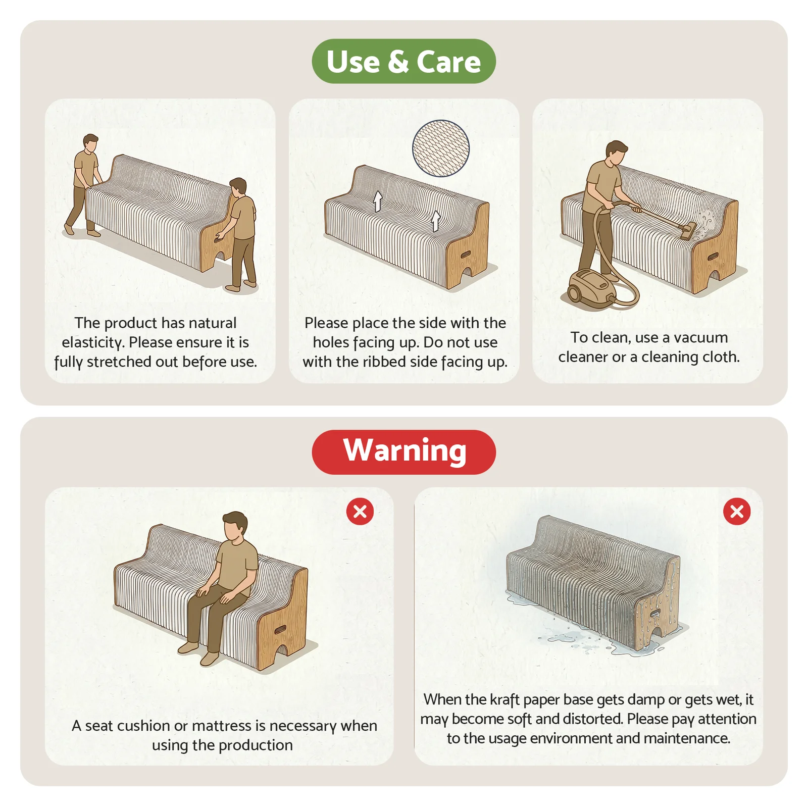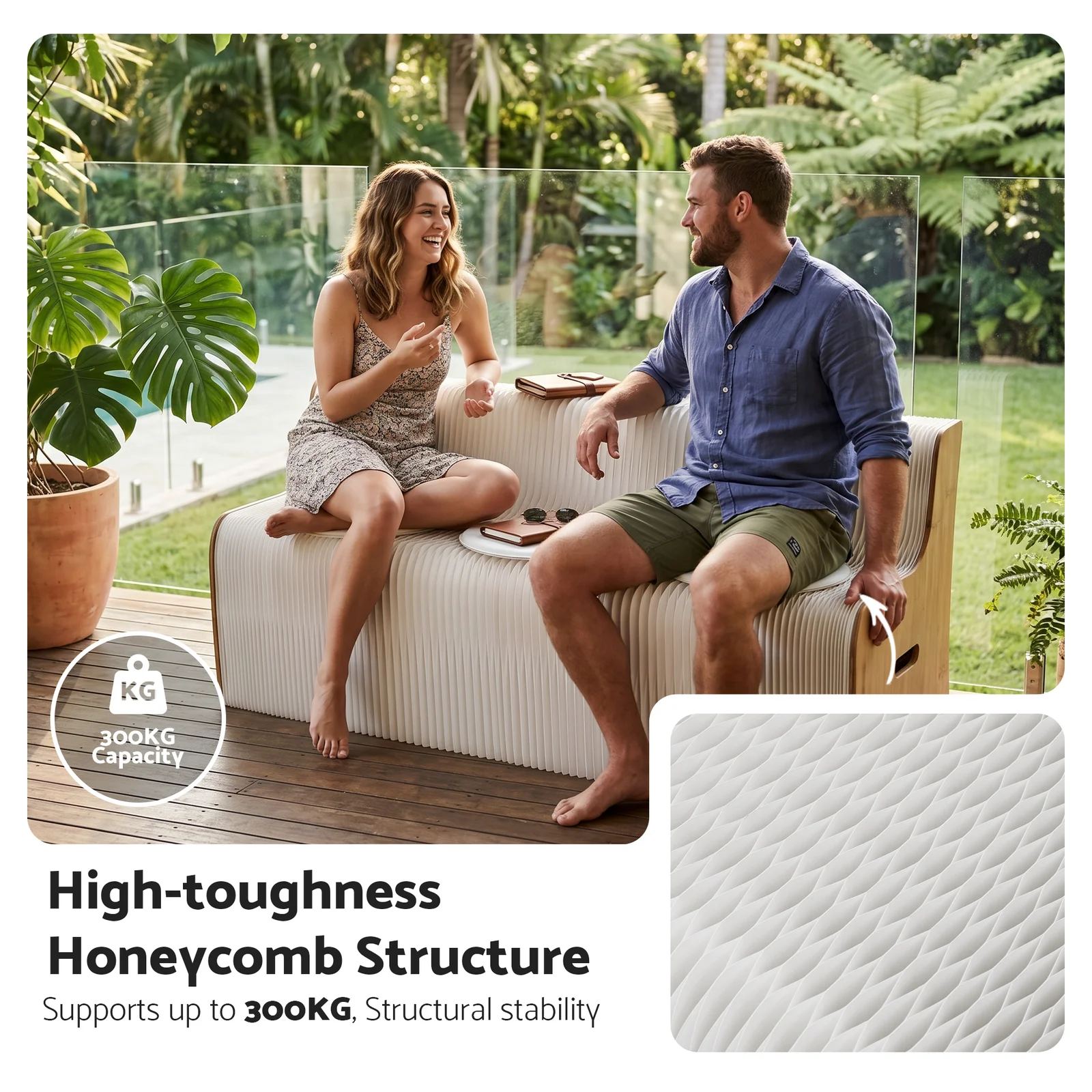Transform your living space with our folding kraft paper sofa. Designed for modern apartments, event hosting, and creative retail displays, this 3-seater accordion bench combines architectural strength with aesthetic appeal. The bionic hexagonal honeycomb structure ensures exceptional stability, eliminating the wobbling issues common in traditional portable seating.