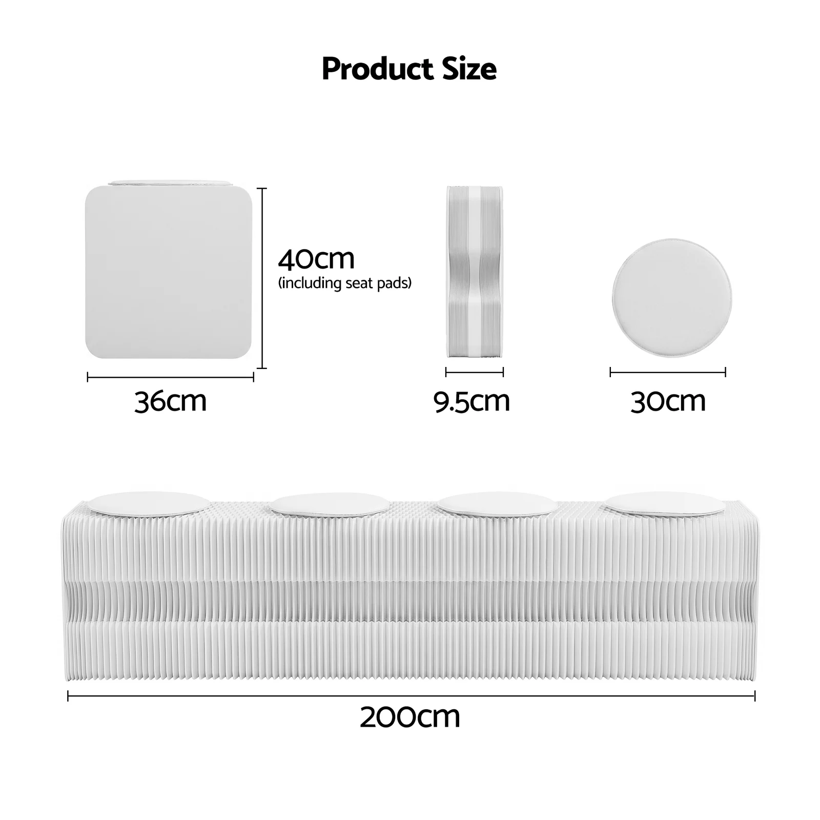 Expanded Dimensions (Overall): 200 cm (L) x 36 cm (W) x 40 cm (H)