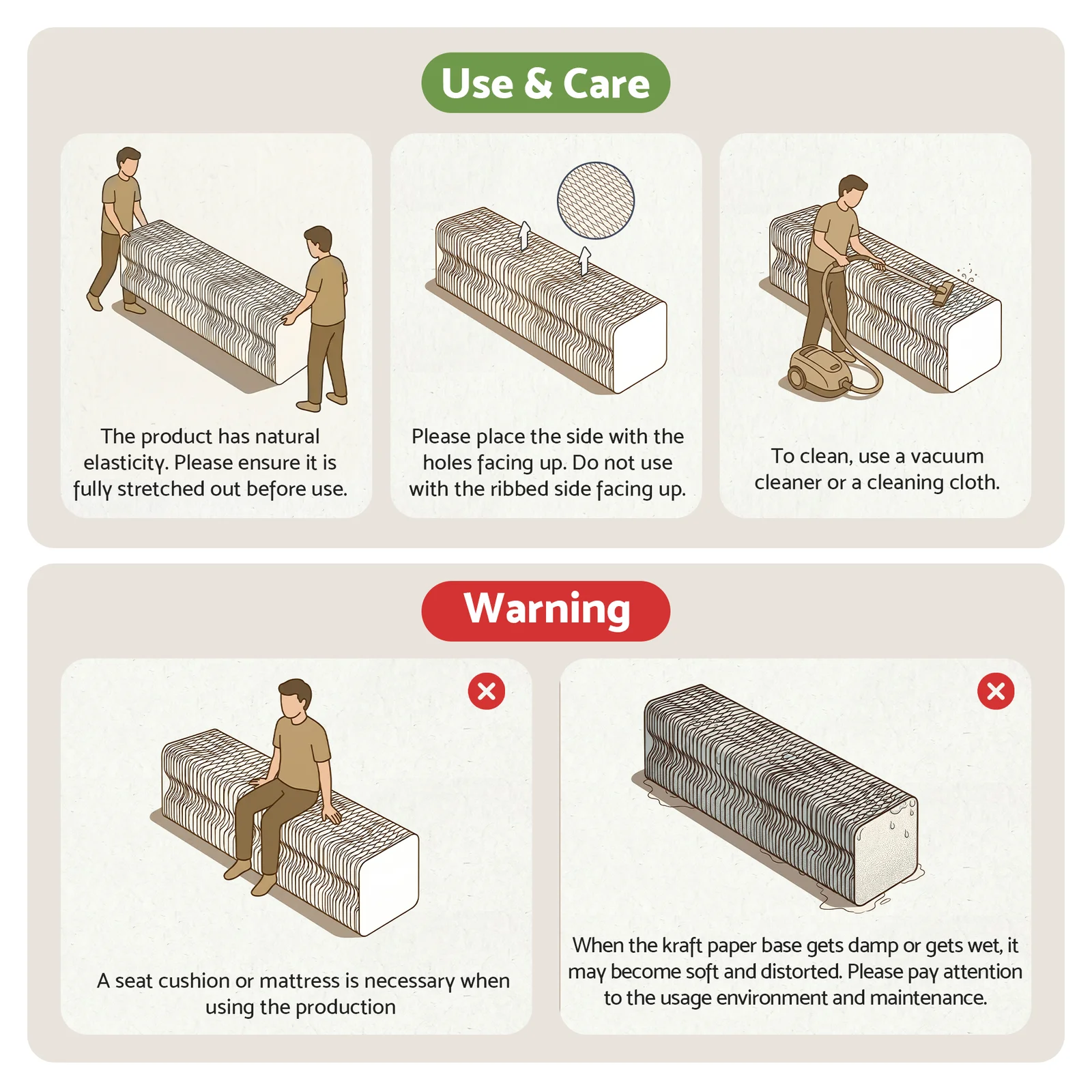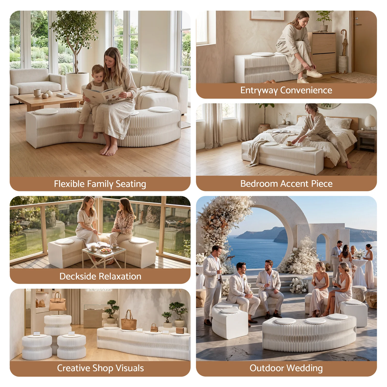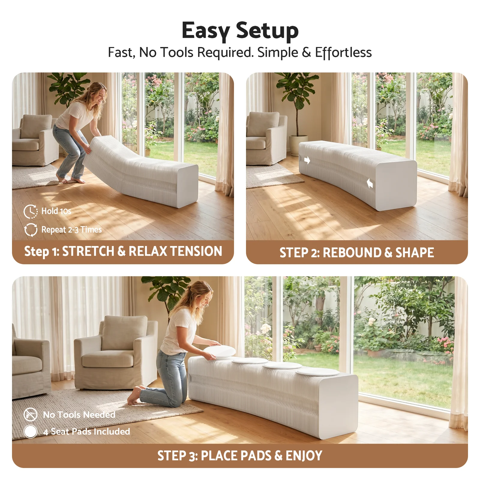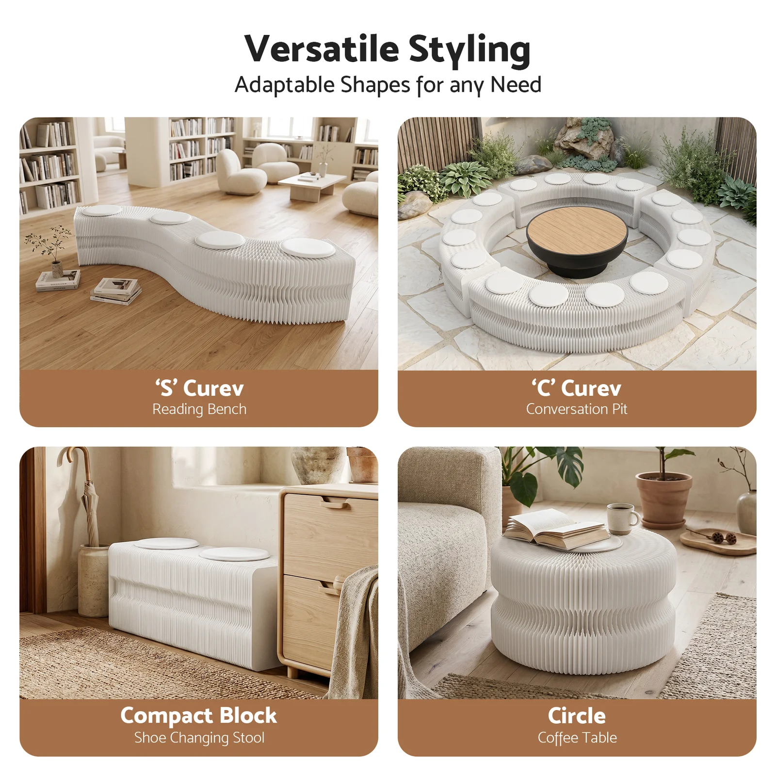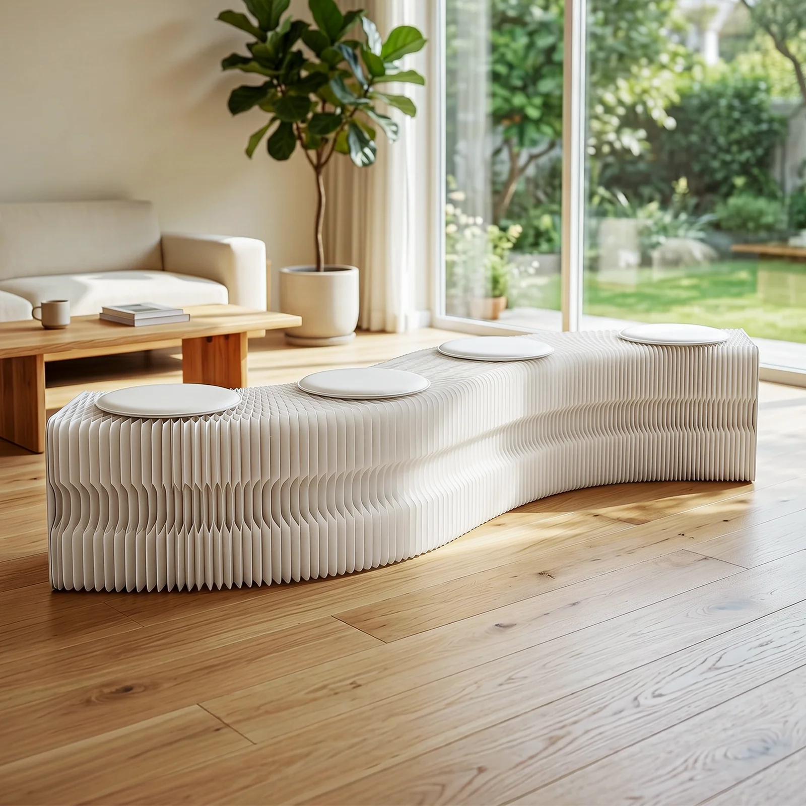 Crafted from natural wood kraft paper, the bench completely avoids formaldehyde and unpleasant odors, ensuring a comfortable experience for everyday use. The flexible design allows you to manipulate the bench into various shapes, providing both functional utility and modern aesthetic appeal.