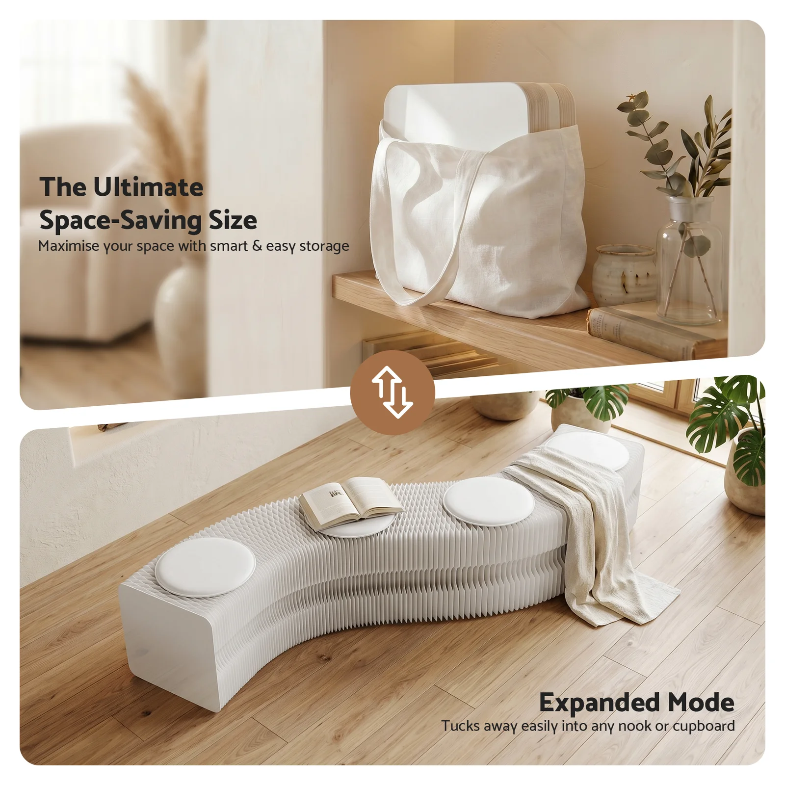 Transform your living and working environments with the Artiss Folding Paper Bench. Engineered with a robust hexagonal honeycomb structure, this accordion-style stool expands seamlessly to accommodate up to 4 adults. Whether you need immediate seating for unexpected guests in your living room, a convenient shoe-changing stool in the entryway, or an eye-catching display piece for a commercial exhibition, this bench adapts to your spatial requirements instantly.