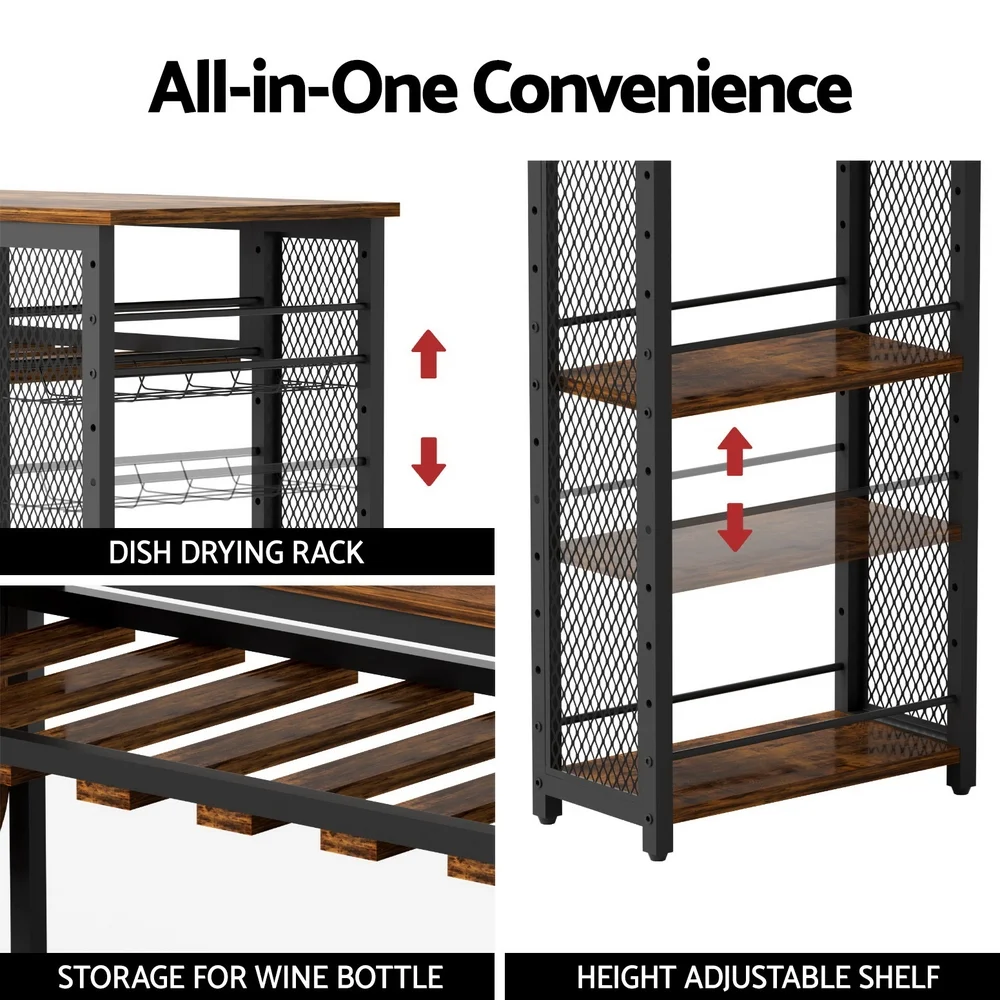 Transform your compact spaces with this industrial-chic bar table featuring intelligent layered organization. The extendable design adapts to any room layout, while built-in wine rack securely stores 6 bottles and dual cup holders keep drinks within reach. Crafted with powder-coated steel for lasting durability, this multi-functional centerpiece seamlessly blends utility with urban aesthetics - perfect for displaying decor collections, organizing barware essentials, or creating an instant entertaining station.