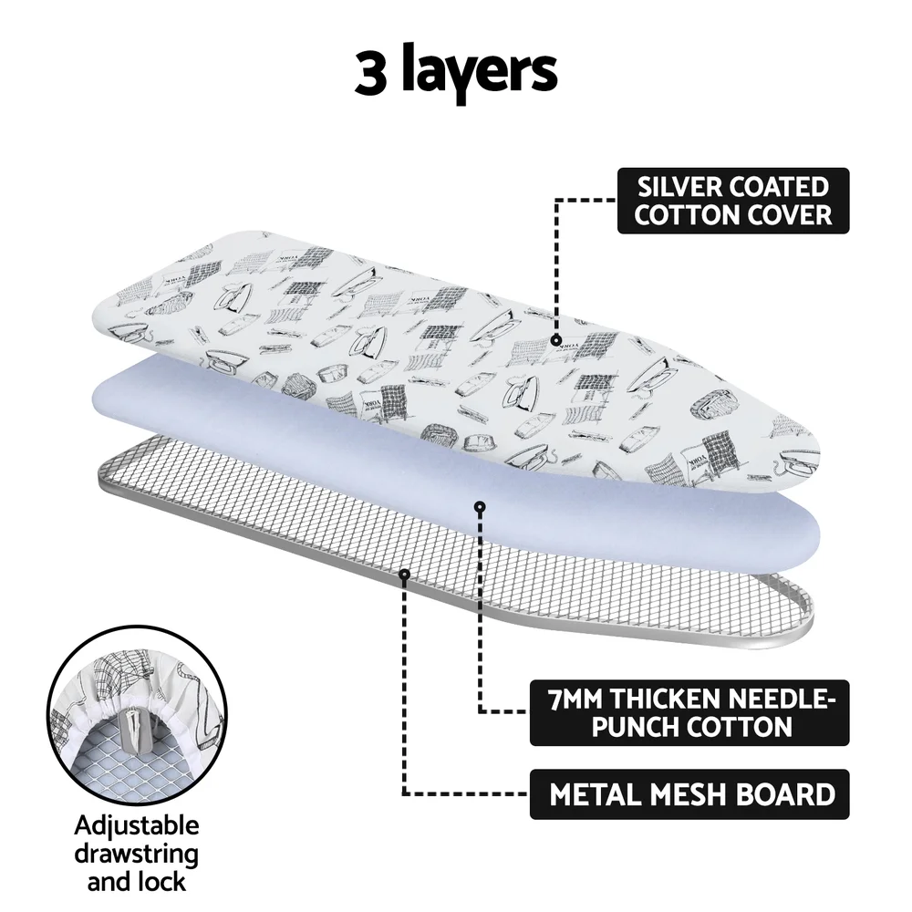 Discover our versatile Artiss ironing board, featuring a sturdy metal frame, adjustable height for comfort, a durable cover in a stylish pattern, and foldable design for easy storage. Ideal for efficient ironing at home.