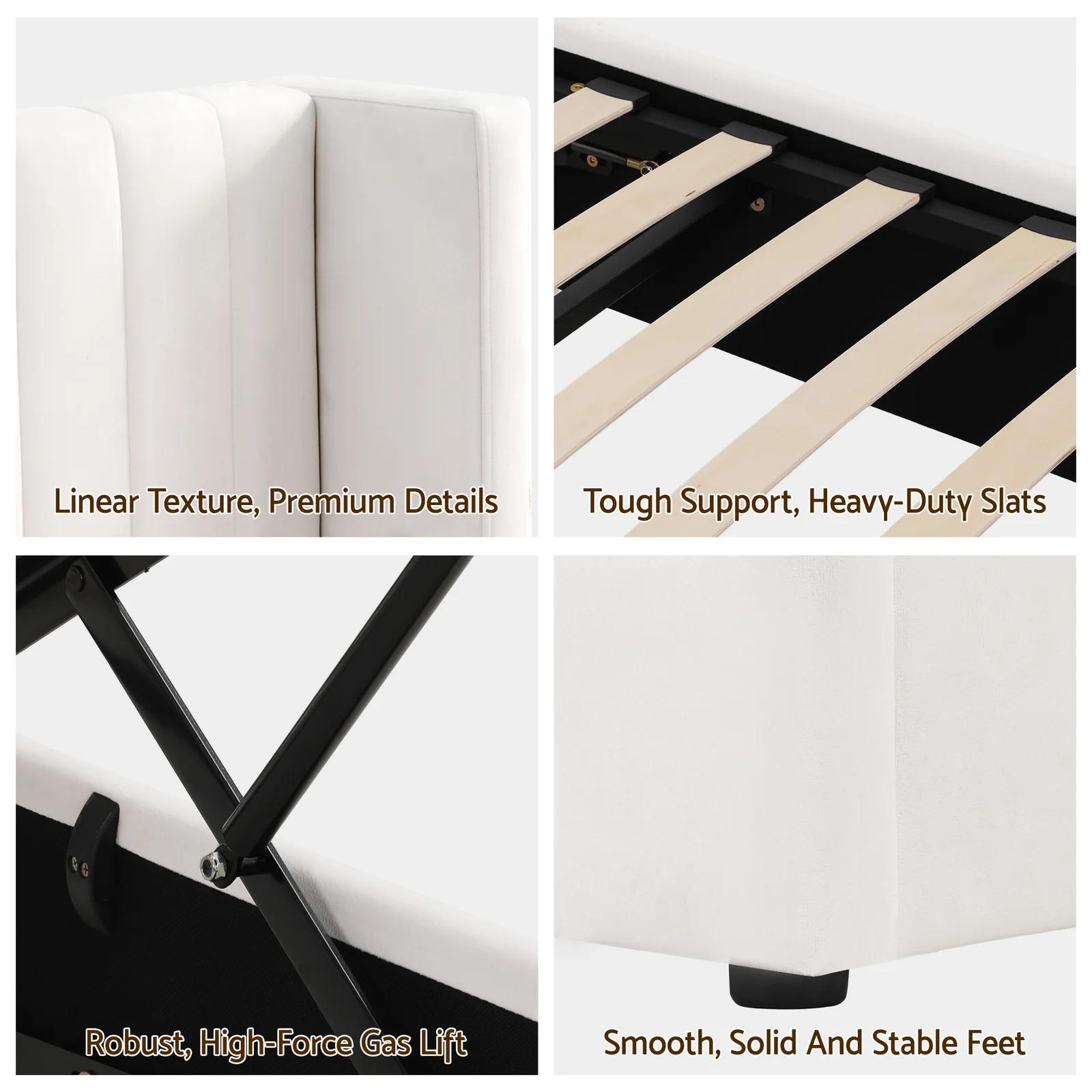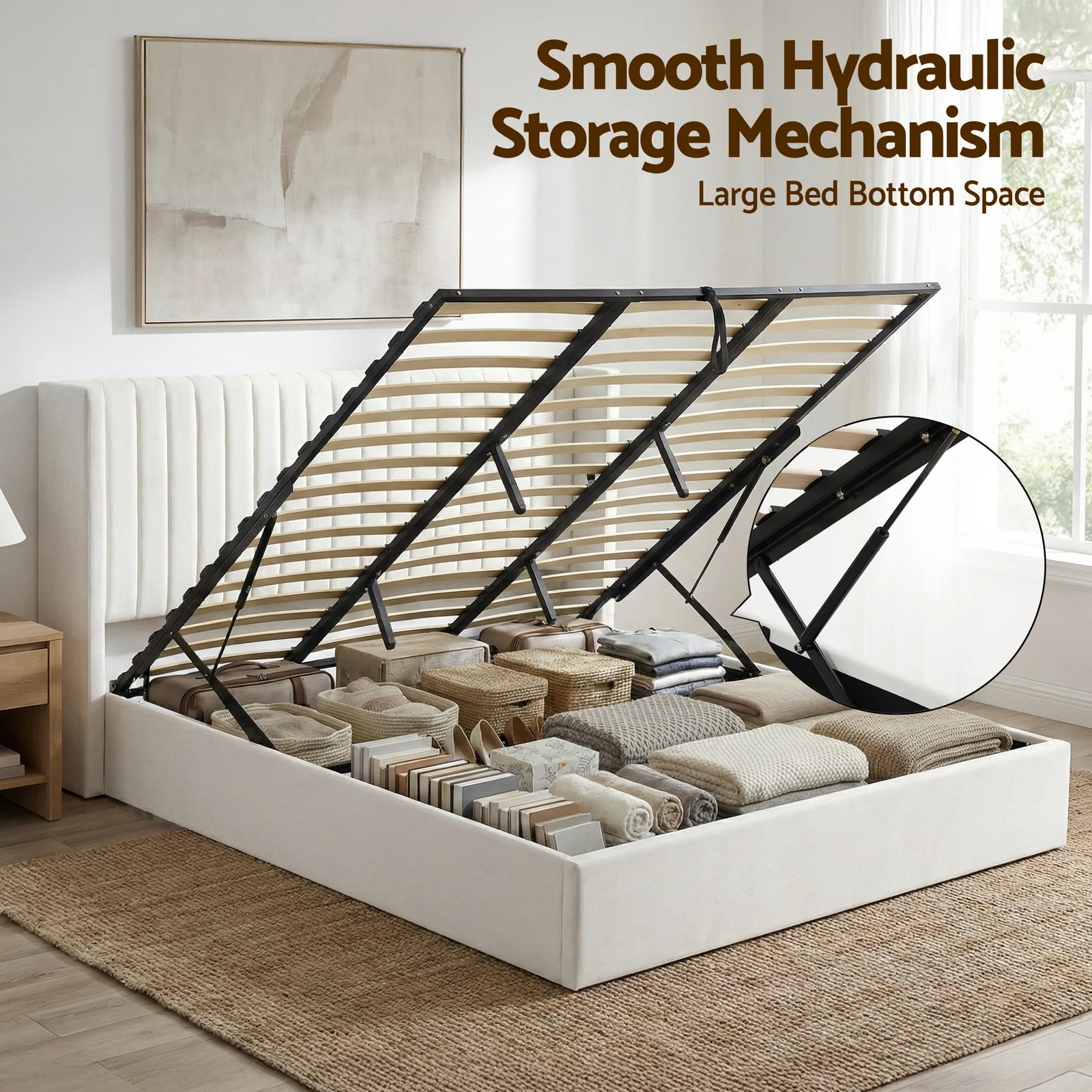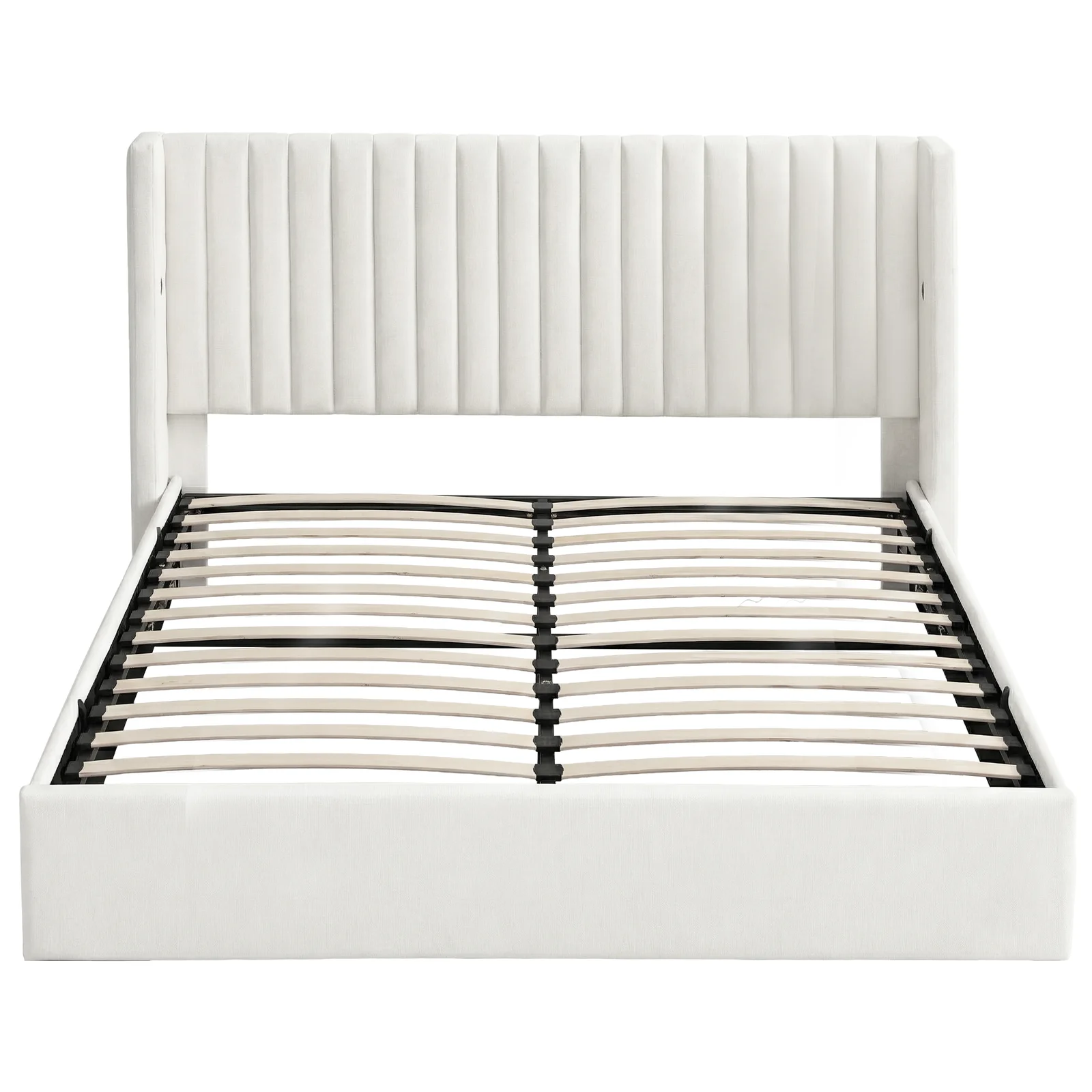 King Upholstered Bed Frame with Gas Lifted+Charging Station
