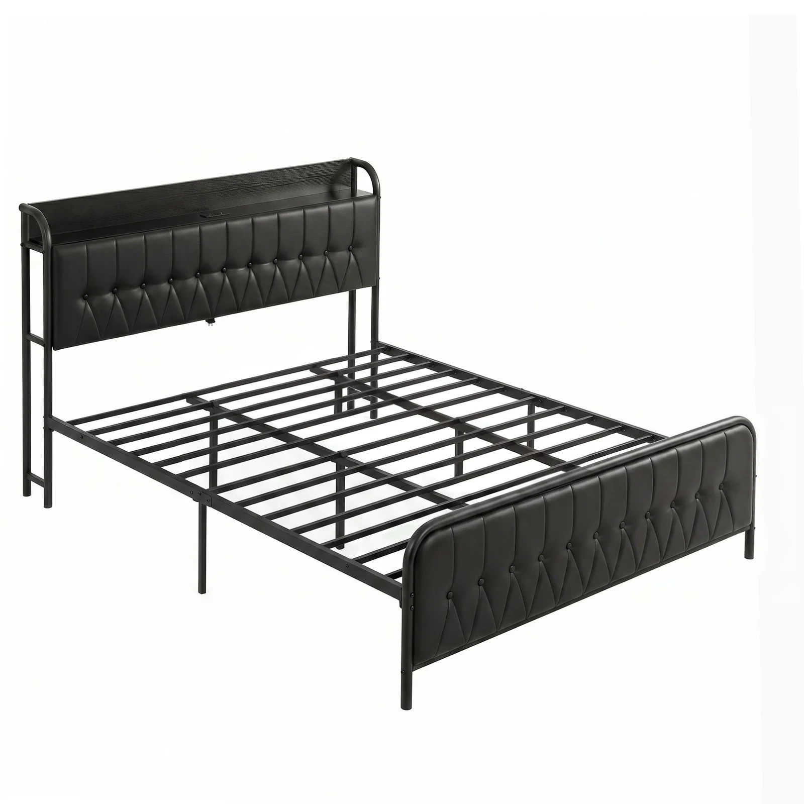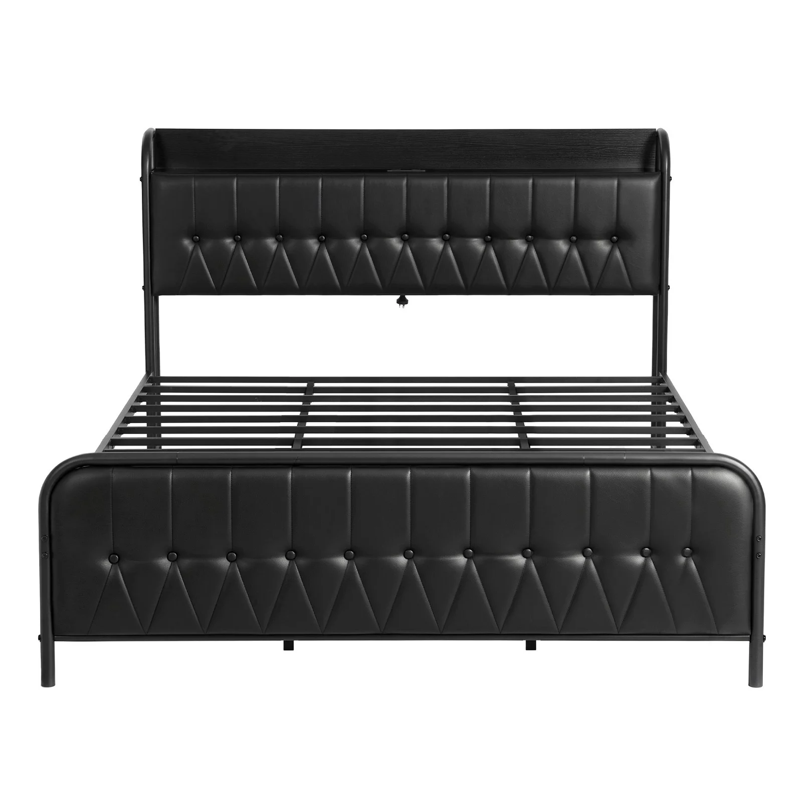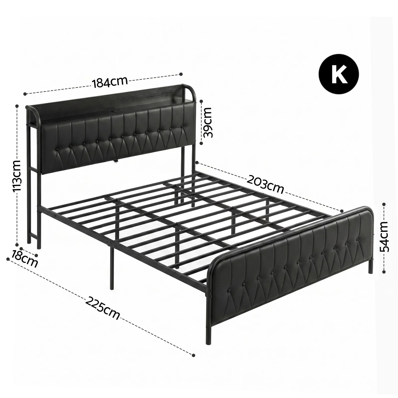 Upgrade your bedroom with this stylish and functional King -sized bed frame. Combining industrial-strength metal support with the luxury of PU leather upholstery, it's designed to provide both a restful sleep and modern convenience.