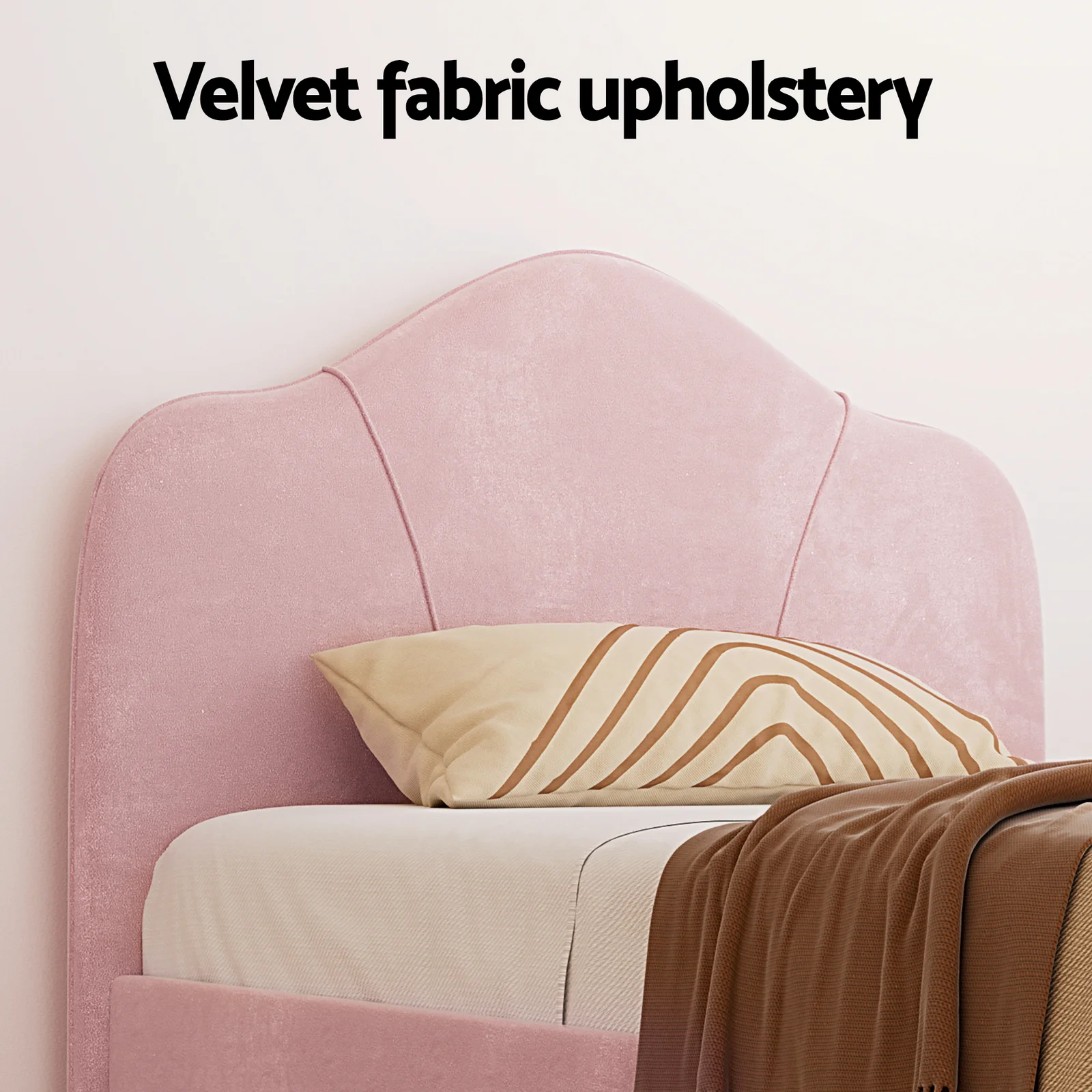 This Artiss King Single Bed Frame features velvet upholstery, storage space, and a plush headboard. Includes a white bedside table with textured E1 MDF shelves (10kg per shelf). Sturdy wooden/metal construction supports 180kg. Easy assembly. Fits standard King Single mattresses (107x203cm). Dimensions: bed 214x118x123cm, table 40x31x55cm.