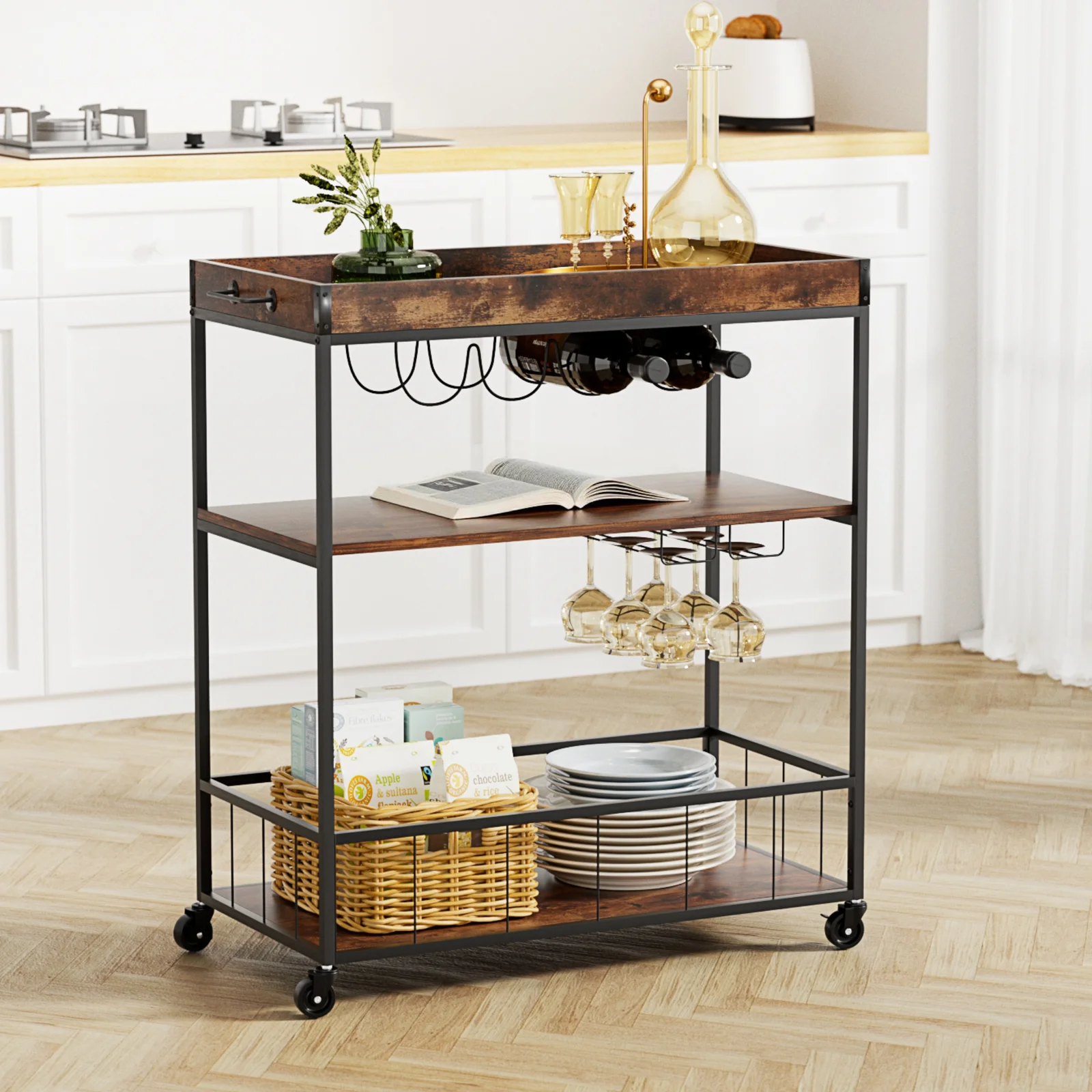 Introducing our Artiss versatile mobile kitchen island. Featuring three-tier open shelving, a spacious prep surface, wine and glass storage, and sturdy metal construction, it's perfect for kitchens, dining rooms, and more. Easy assembly and lockable wheels ensure convenience and stability.