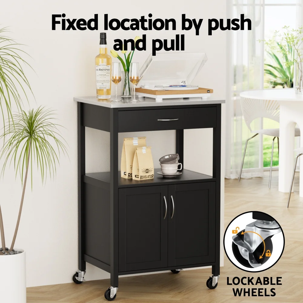 Beyond the kitchen, use it as a mobile bar cart, a stylish workbench, or a serving station for parties. With a straightforward assembly, the Artiss island blends seamlessly into your space, offering unparalleled utility and modern style in black and silver.