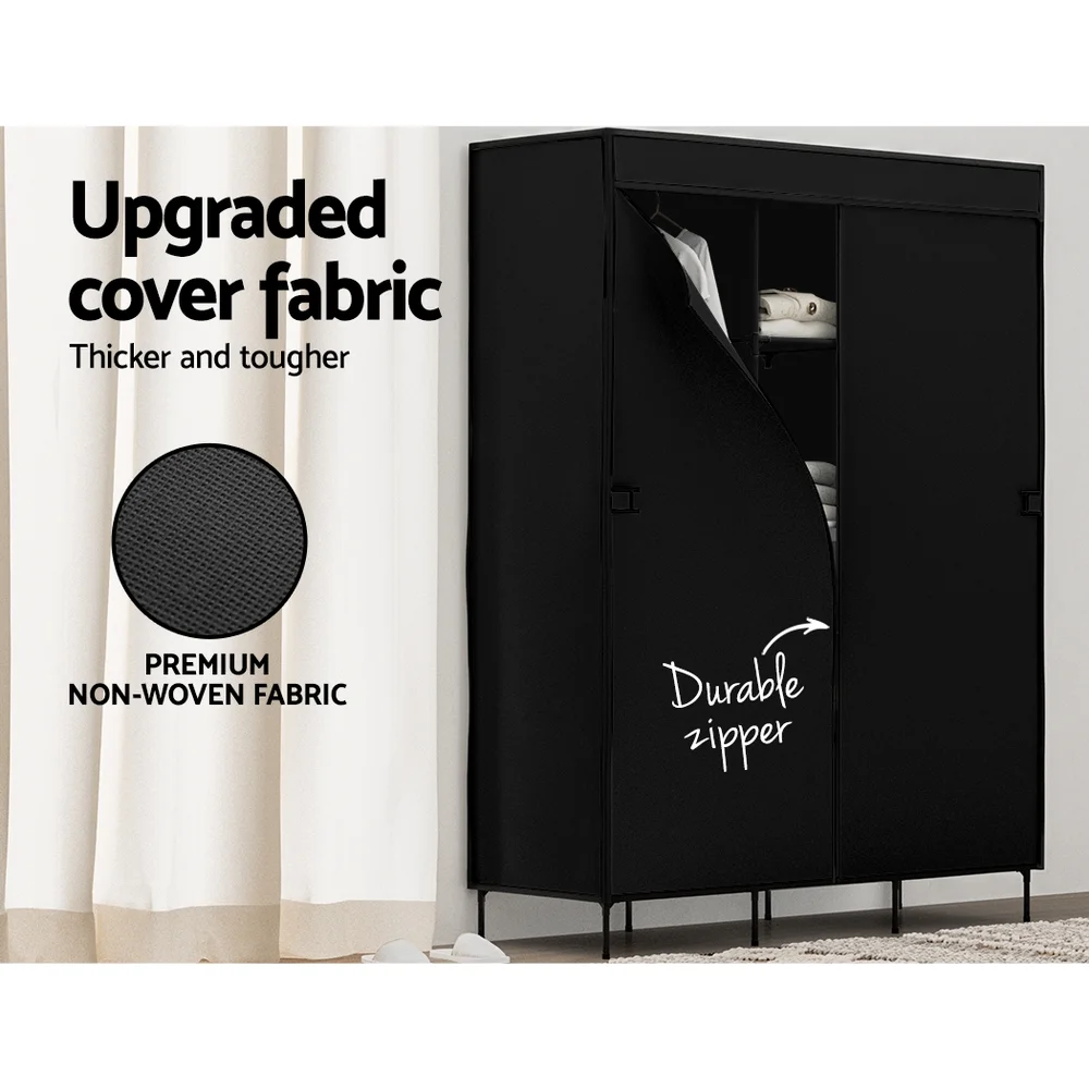 For an easy and affordable furniture solution, look no further than the Artiss DIY Fabric Wardrobe. Made from premium non-woven fabric with a zipper and curtain design, the piece has the capacity of a traditional wardrobe at a fraction of the cost. A sturdy metal frame and non-slip feet keep your wardrobe standing tall and strong, while the water-resistant shelves prevent the growth of mould, mildew and bacteria. Four hanging rods will hold your favourite suits, dresses and shirts, convenient side pockets hold your smaller essentials, and you'll find generous underneath storage space for shoes and boots. Best of all, you can adjust the panels for your individual storage needs. With completely tool-free assembly, it's never been easier to keep your room organized with Artiss.