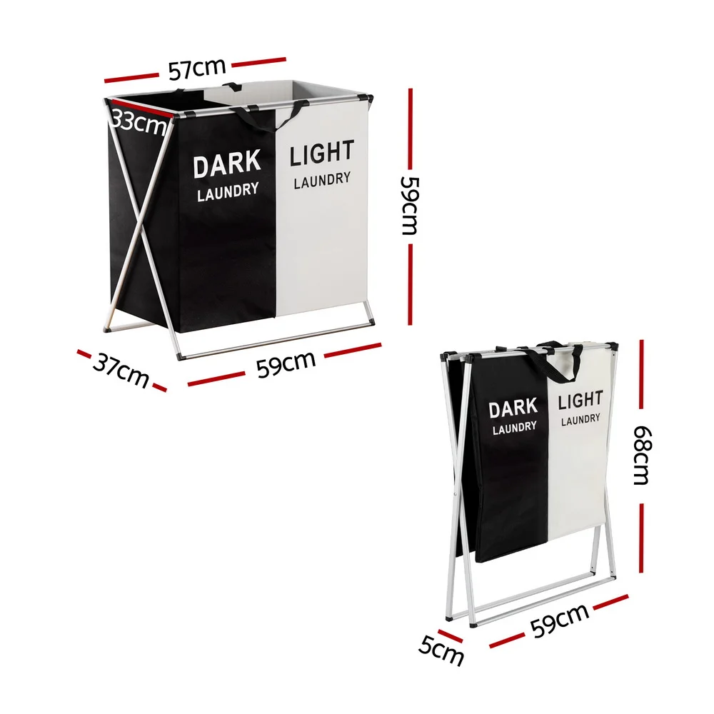 Get your laundry done effortlessly and without hassle thanks to the Artiss Sectional Laundry Basket. With 2 sections to separate dark, light and colour laundry, the basket not only has a large capacity but easily eliminates laundry mistakes – no accidental staining. The laundry hamper features a robust and stable X-shaped frame made from aluminium alloy and hard-working fabric lining for long-lasting use. The hamper is conveniently designed to fold away at a moment's notice, so you can free up precious laundry space. You can also carry it around the house with the easy-to-use handle. Save time and effort while doing laundry with an Artiss Laundry Basket.
