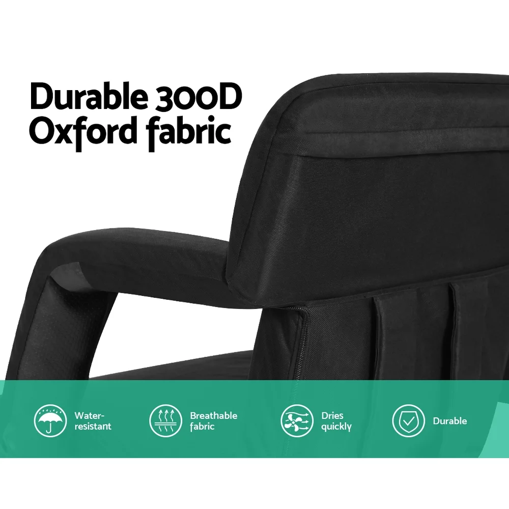Level up your comfort at your next sports game, concert or simply lounging at home with the Artiss Heated Floor Lounger. This adjustable floor lounge sofa can be adjusted to five different positions for your perfect relaxation angle. Made from durable 300D Oxford fabric, a soft cushioned seat, a headrest and armrests wrapped around a heavy-duty steel frame, you’ll feel comfortable and supported all at once. But that’s not all…the real magic comes from the heated function that can warm your seat up to 110 degrees Fahrenheit (43.3 degrees Celsius). The chair can be plugged in via USB port to a wall socket or battery pack, so you can take it with you anywhere. The chair comes with a storage pocket, bleacher hook, and adjustable shoulder carry straps for added convenience. Enjoy family outings, road trips, movie nights and more with the Artiss Heated Floor Lounger.