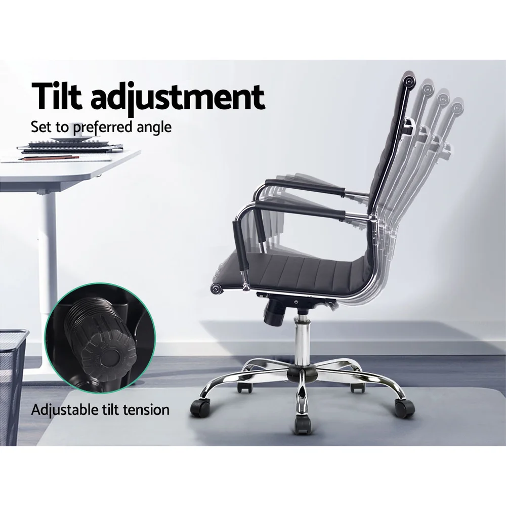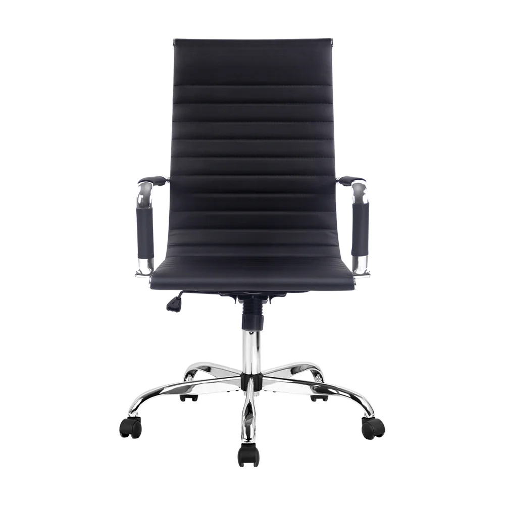 Bring a touch of contemporary living to your home or office interior with our Artiss office chair. Full of iconic styling, the office chair is absolutely sleek and elegant in every profile. More so with its faux leather upholstery that offers sophistication and class. Better still, the seat is rotatable 360 degrees to face any direction with ease. It also comes with both height and tilt adjustment to allow you to be seated at your most comfortable position and posture.Thoughtful touches such as a chrome-finished rack at the back of the chair allows for hanging of ties, scarfs and other fashion accessories. Not least, the similar chrome adorned base has five wheel castors for easy movement.