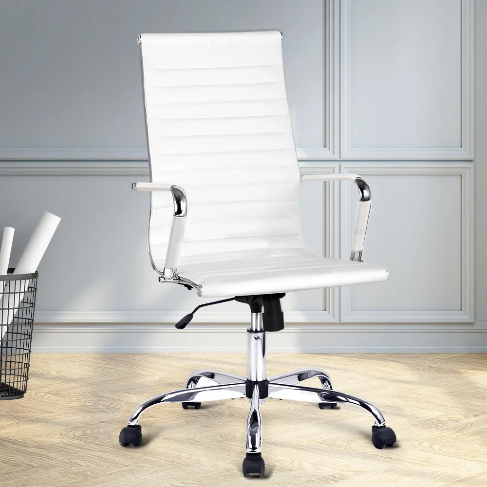 Artiss Office Chairs PU Leather Executive Work Computer Seat White