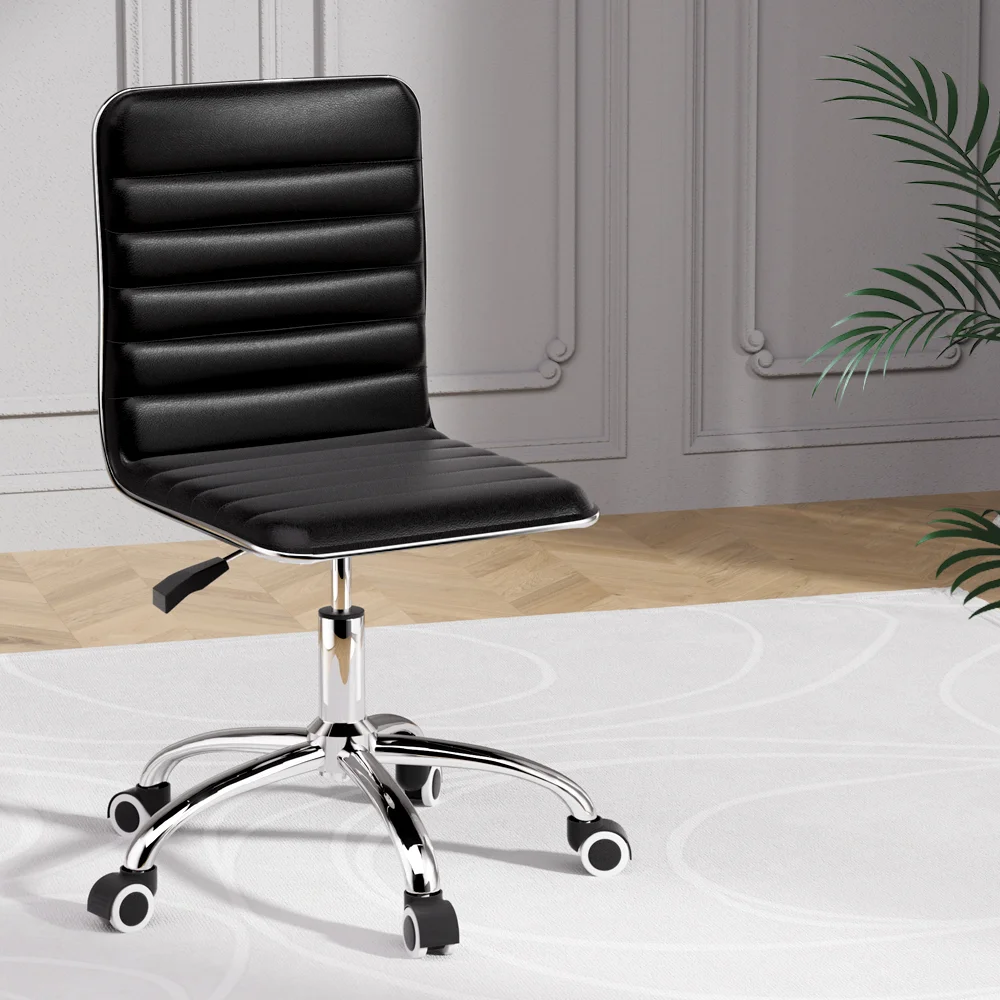 Bring a touch of contemporary living to your home or office interior with our Artiss office chair. Full of iconic styling, the office chair is sleek and elegant in every profile. Its faux leather upholstery is waterproof and offers sophistication and class. The seat is rotatable 360 degrees to face any direction with ease, while the soft padded seat keeps you comfortable for longer. It is height adjustable with a low-back design to allow you to be seated in your most comfortable position and posture. The hard metal base has five castor wheels for ease of movement. Easy to assemble and easier to maintain, the Artiss Office Chair is perfect for any work environment from your home to the office.