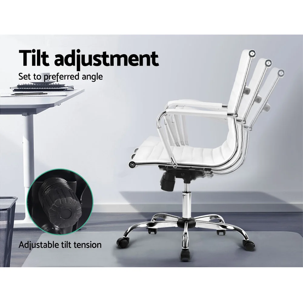 Bring a touch of contemporary living to your home or office interior with our Artiss office chair. Full of iconic styling, the office chair is absolutely sleek and elegant in every profile. More so with its faux leather upholstery that offers sophistication and class. Better still, the seat is rotatable 360 degrees to face any direction with ease. It also comes with both height and tilt adjustment to allow you to be seated at your most comfortable position and posture. Thoughtful touches such as a chrome-finished rack at the back of the chair allows for hanging of ties, scarfs and other fashion accessories. Not least, the similar chrome adorned base has five wheel castors for easy movement.