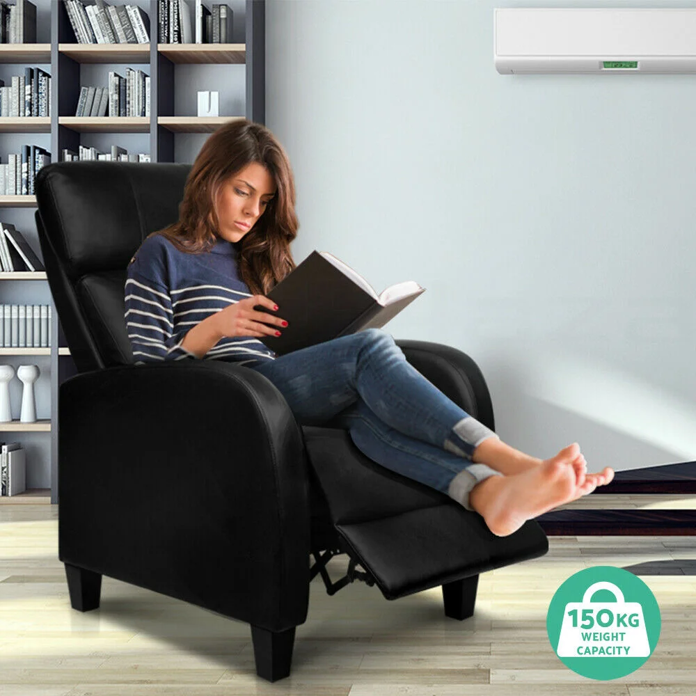PU Leather Armchair Recliner - Black