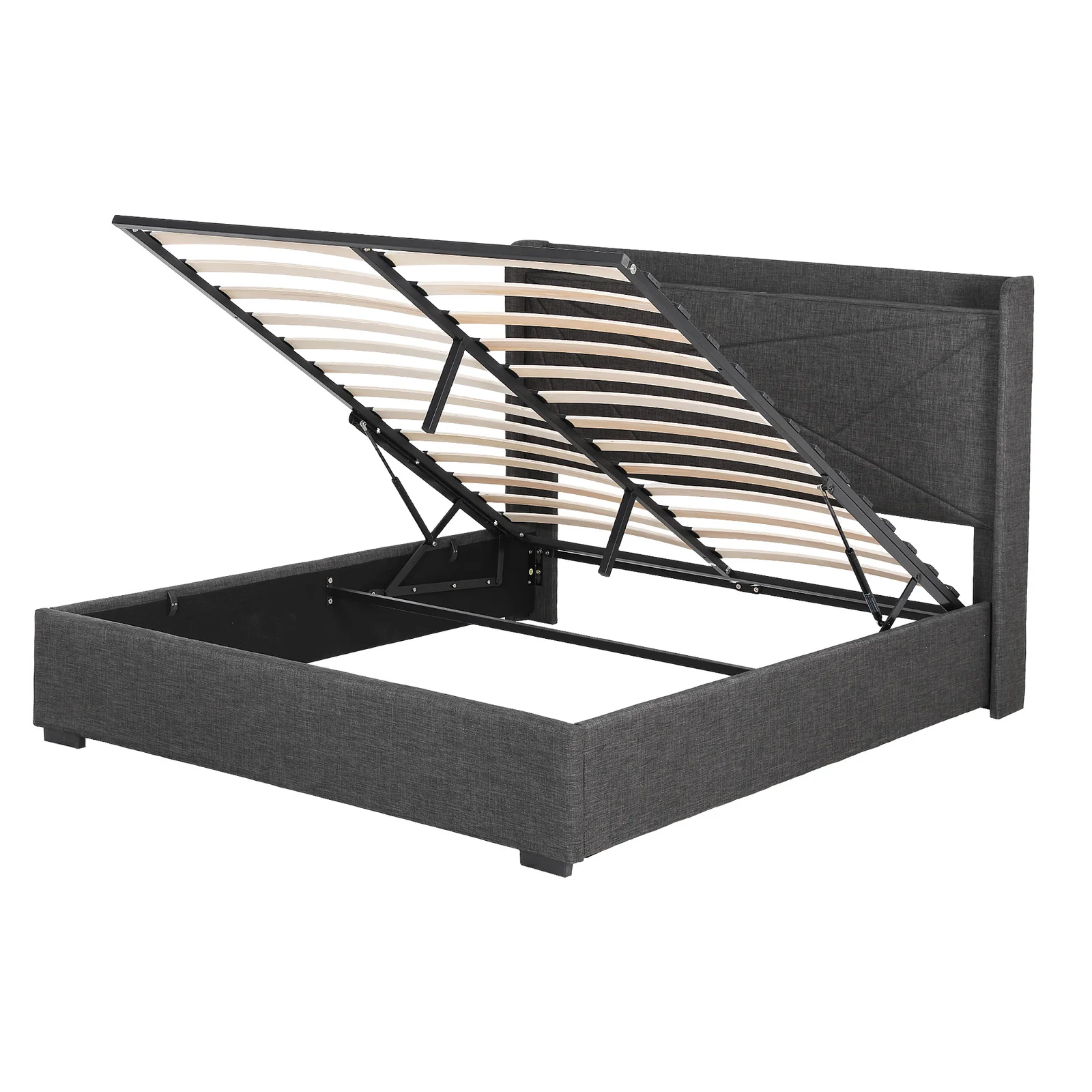 QUEEN GAS LIFTED UPHOLSTERED BED FRAME with Charging station