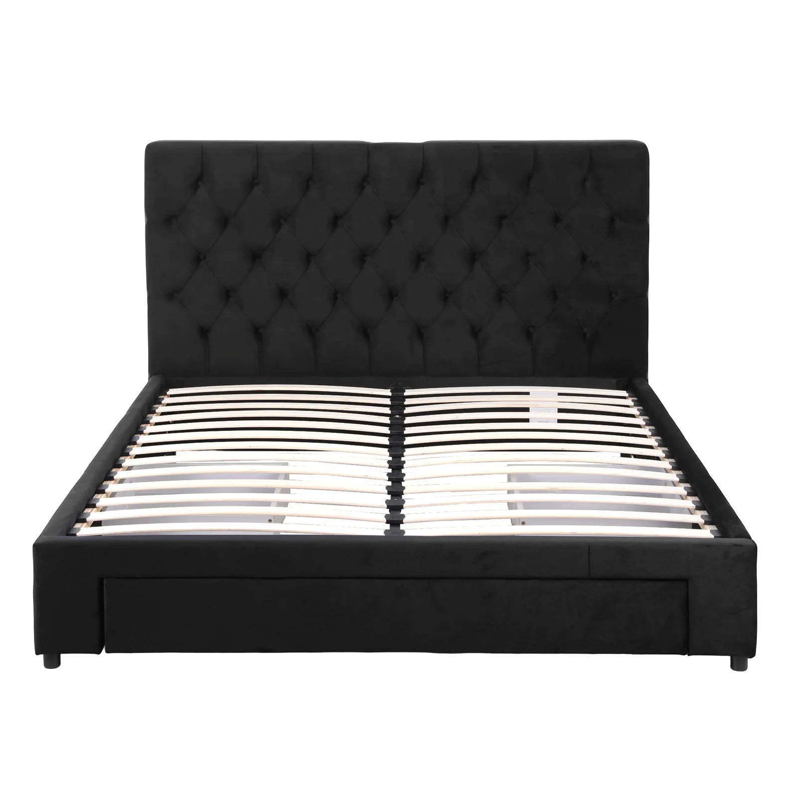 Elevate your bedroom with the Queen upholstered bed frame. This Queen bed frame combines premium velvet fabric with pine wood construction for lasting durability. Maximise space with three wheeled storage drawers – two bedside, one oversized foot drawer. The integrated charging station features SAA-certified sockets, USB and Type-C ports for convenient device powering. Engineered with reinforced bent plywood slats and smooth-gliding rollers, it offers effortless storage access. Perfectly sized for Australian bedrooms, this storage bed with charging functionality blends practicality with contemporary style.