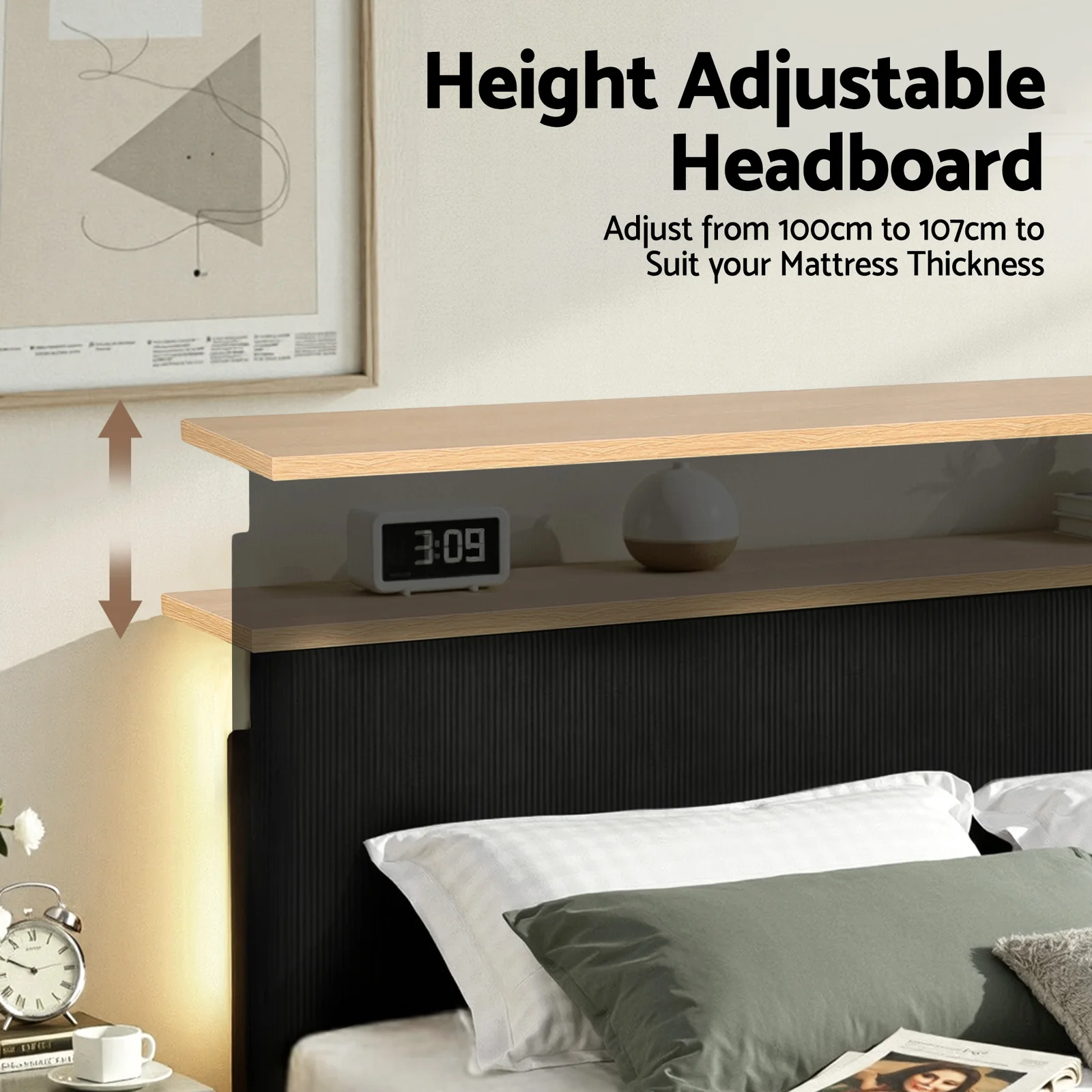 Height adjustable headboard (100-107cm)