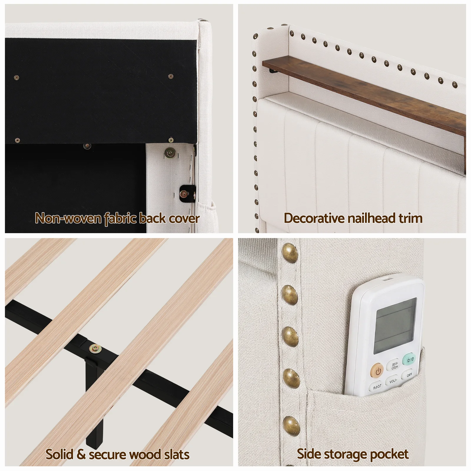 Material: Plywood+Pine wood+Faux Linen Fabric+Sponge+Metal