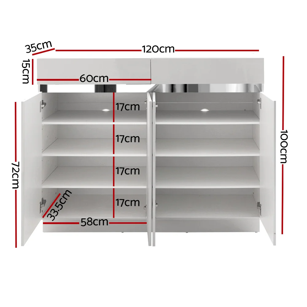 You are shoe proud. That is why you need ample space for all your wonderful footwear. And with our Artiss Shoe Cabinet, you will get all the space you need to neatly organise your shoes. Our high-quality shoe cabinet features shelves that are height-adjustable to accommodate different types of shoes and use. The cabinet has two cupboard areas of closed shelving to effortlessly house up to 26 pairs of footwear depending on size. Better still, you also get two top drawers for storing any other home essentials. Plus, the cabinet also features thoughtful backboard vents, handy push-to-open mechanism and sturdy hinges to enable the unit to stand up to robust use. Not least, the durable 12mm particle board and MDF construction, with an UV high-gloss finish on the front, make this shoe cabinet an attractive welcome to any home entrance.