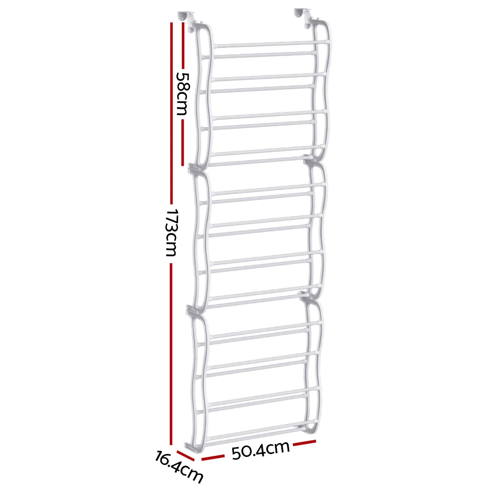 As your shoe collection grows, so should your shoe storage. An Artiss Eric Shoe Rack is exactly what you need to keep loose shoes tidy and organised. The rack hangs neatly from your door and features non-slip pads to prevent disturbance throughout the day. Made from a durable plastic frame and metal tube shelves, this multipurpose storage rack has a 2.5kg weight capacity per shelf, making it ideal for up to 24 pairs of shoes. The rack allows for easy ventilation, preventing bacteria growth, mould growth, and odours. Best of all, the rack doesn't require any tools to build: simply connect and go. With so many options at your disposal, it's easy to see why the Artiss Eric Shoe Rack is the right choice for your entryway, bedroom, or walk-in wardrobe.