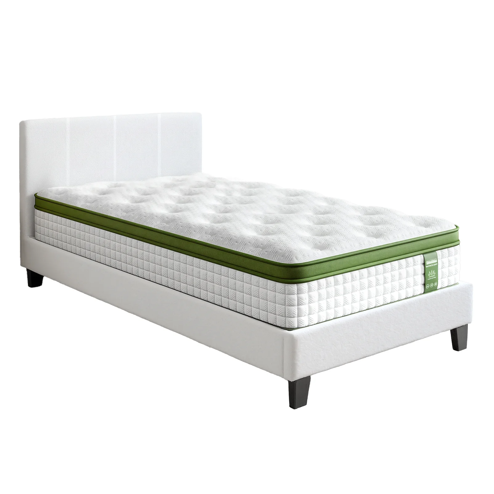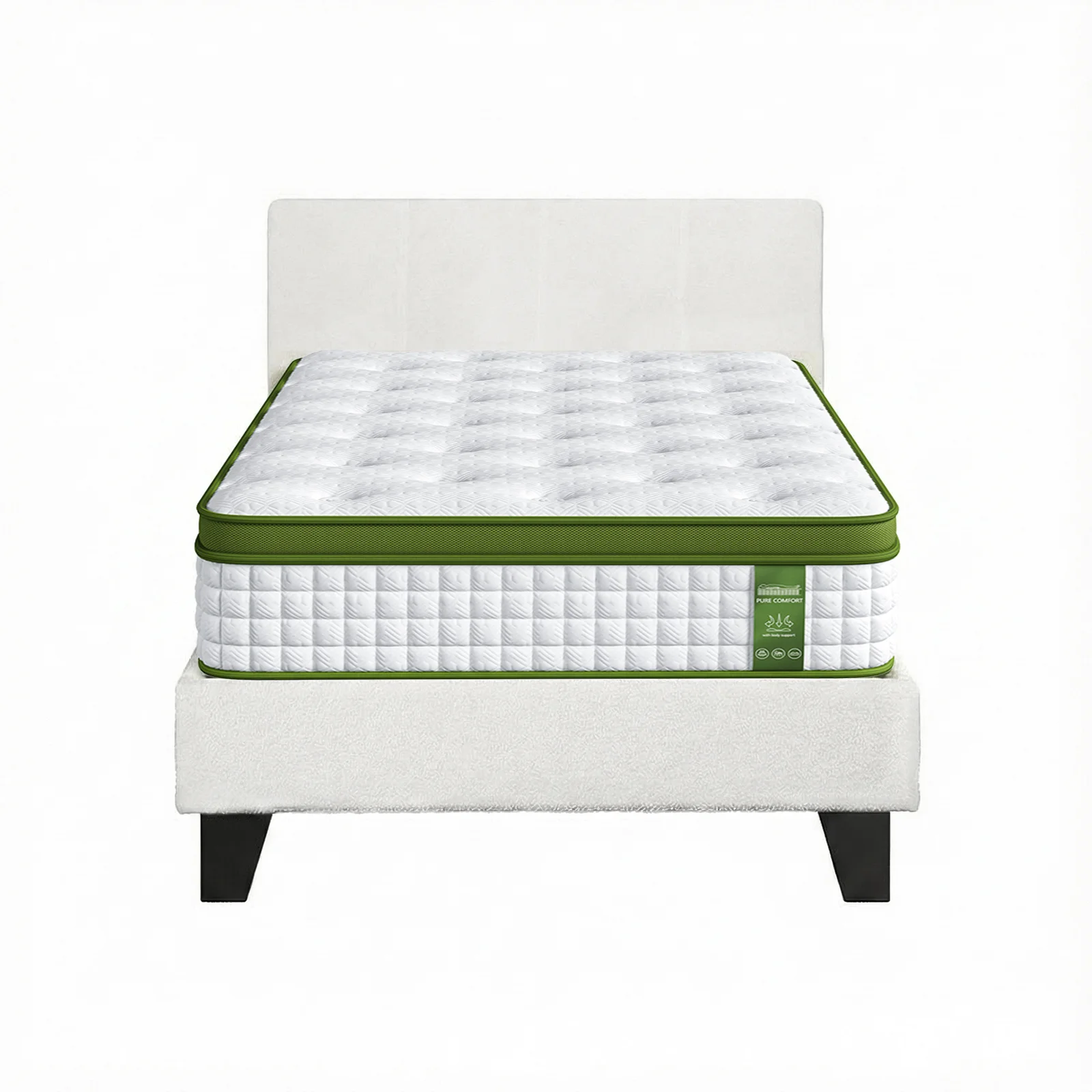 The Artiss Single Bed Frame with Hybrid Mattress Set features a platform headboard in premium boucle fabric, paired with a medium firm pocket coil mattress for balanced support and pressure relief. Its reinforced wooden slat base and sturdy legs ensure lasting stability. Includes easy assembly and a 10-year service for peace of mind. Ideal for modern bedrooms.