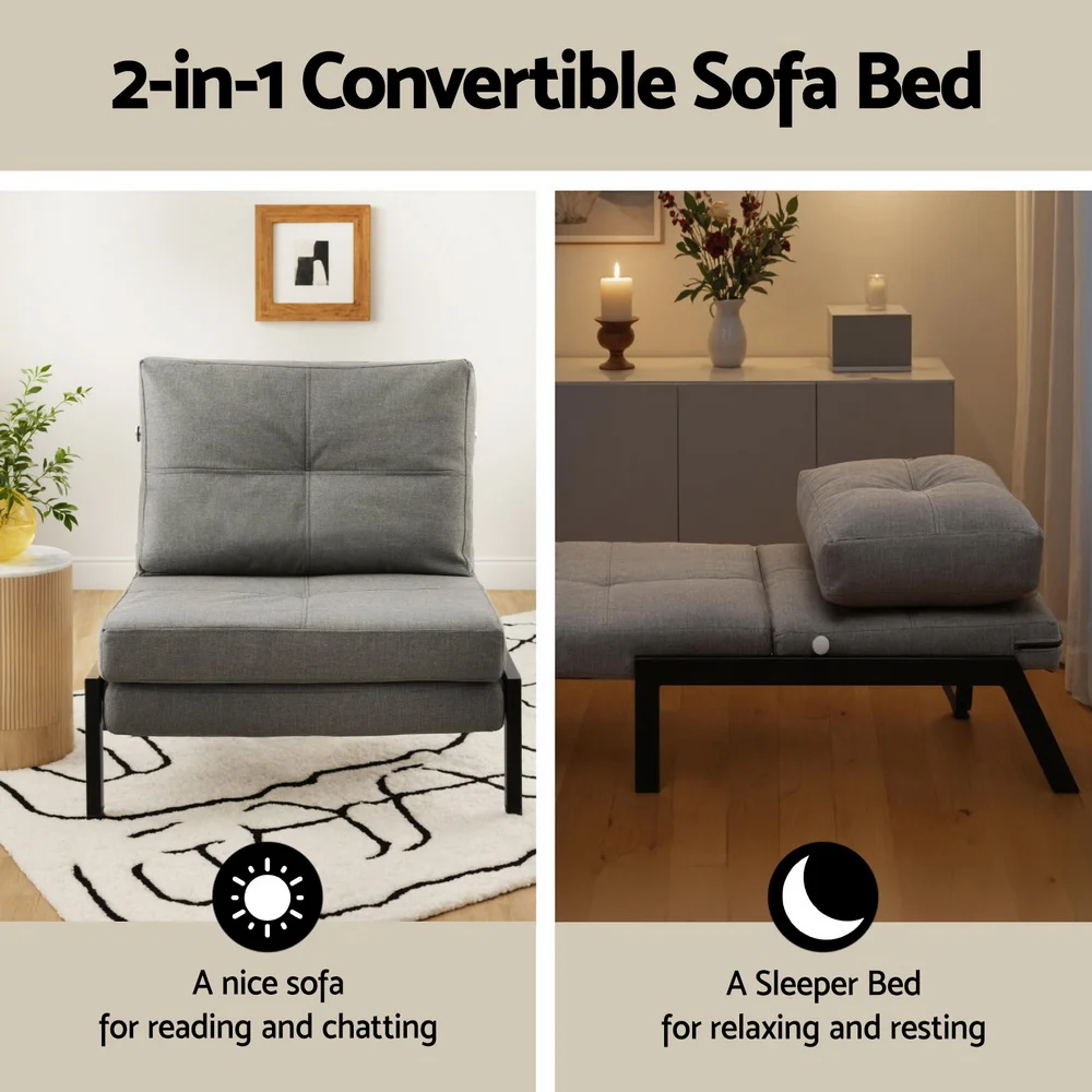 Complete with throw pillow, this versatile recliner sofa is perfect for living rooms, guest rooms, or offices. It can be used as a sofa lounge, futon bed, or foldable sofa bed, fitting seamlessly into any space.