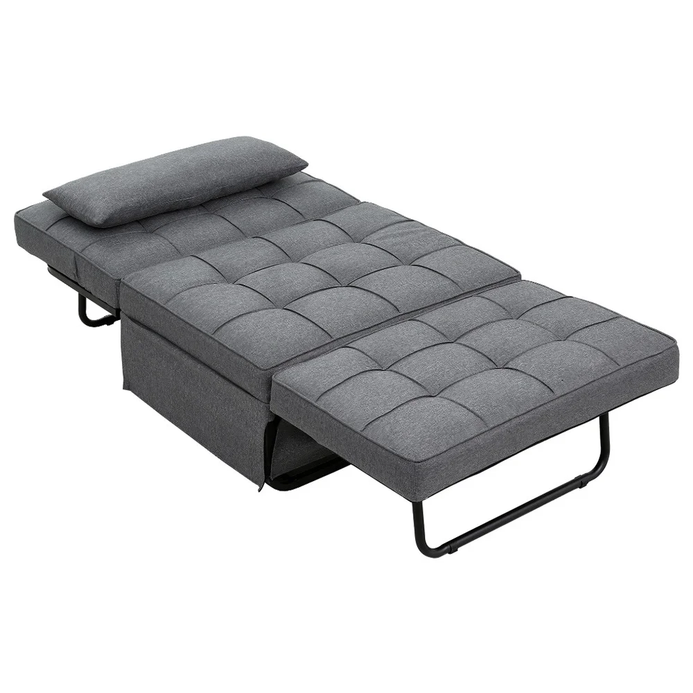 Practical, versatile and stylish, the Siyi Sofa Bed is the perfect addition to your multifunctional living space. Thanks to its flexible design, this 4-in-1 piece can transform into an ottoman, a single sofa, a lounger and a single bed within minutes, providing a convenient sleeping solution for guests or even for yourself. Crafted with premium linen fabric upholstery, this sofa bed not only offers a stylish and modern look but also ensures durability and softness. The extra-thick seat cushioning guarantees optimal comfort, while the wear-resistant material ensures long-lasting use. With five adjustable backrest positions, you can easily find the perfect angle for relaxation or lounging. The sturdy metal frame and legs provide stability and support, so you can fully relax as you sit back and slumber. Best of all, the easy assembly process makes setting up this sofa bed a breeze. Upgrade your living space with the Siyi Single Sofa Bed and enjoy the convenience and comfort it brings.
