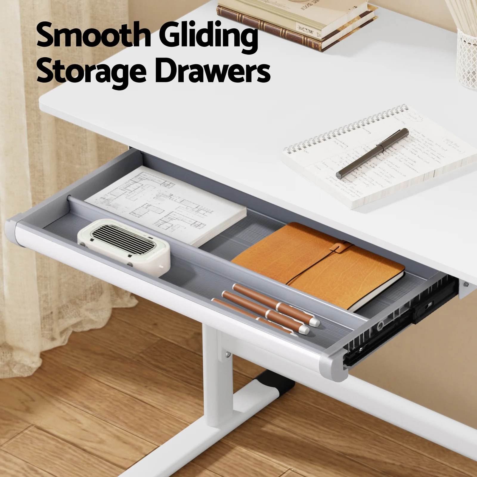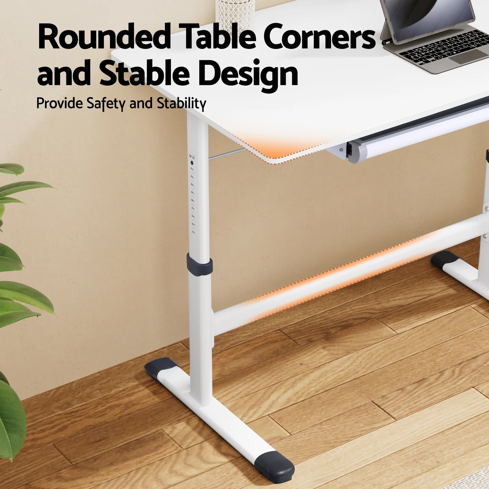 Enjoy a tidy and ergonomic workspace with this Artiss standing desk. Designed as a practical study desk or home workstation, it features a simple hand-crank mechanism for smooth height adjustment. The built-in drawer helps keep your essentials organised and within reach. Supported by a sturdy stabilising brace, this adjustable desk offers a stable and reliable surface for your computer and work materials, all in a clean, minimalist design.