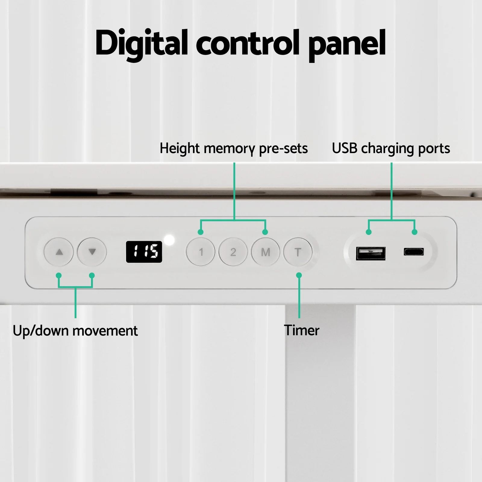 Do you experience poor posture or mysterious pains while working? Keep your back and health in good shape with an Artiss Sit Stand Desk. With our stepless height-adjustable desk frame, you can stand while working and stretch and engage your muscles to prevent them from weakening. Our high-quality powder-coated desk frame makes cleaning and maintenance easy and ensures ultimate sturdiness. It features an easy-to-use digital control panel that enables you to easily adjust the desk to a suitable height, and you can save up to two preset heights for a seamless transition. The reminder mechanism will let you know the optimal time to switch positions. The smooth motors allow for ultra-quiet operation with low energy consumption. A large storage drawer will keep your work essentials at hand while preventing clutter. USB charging ports allow you to charge all your necessary devices while working. Best of all, the desk is easy to set up, so you can get to work right away. Enjoy improved posture, reduced fatigue and increased productivity with an Artiss Sit Stand Desk.